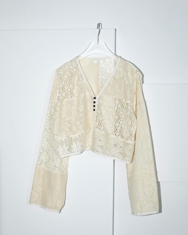 様々なレースを組み合わせたパッチワークトップス。雰囲気の違うレースを合わせることで、立体感ある表情豊かな一枚に仕上げました。シンプルなボトムに合わせるだけでコーデが華やぐ主役トップスです。 SIZE 着丈 肩幅 バスト 袖丈 裾幅 F 42cm 37cm 108cm 62.5cm 54cm