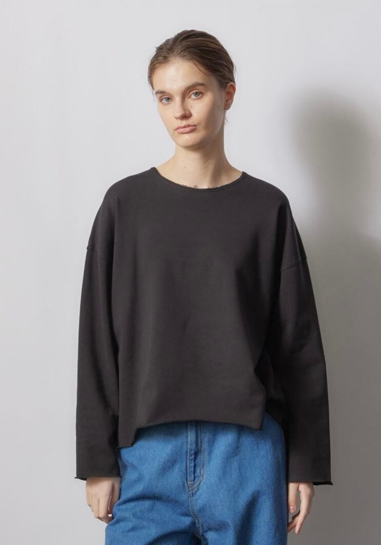 コンパクトな目面と適度な肉感で、柔らかく膨らみのある風合いに仕上げることで着心地抜群な肌ざわりのミニ裏毛プルーバー。大人カジュアルには必須のカットソー。フロントは短く前後差のあるヘムデザインで、たっぷりとした身幅のシルエットが気になる箇所をカバーしながら、すっきりとした見た目を実現。着丈もバランスの取りやすいサイズ感でボトムも選ばないので着回し力も抜群。ベーシックなカラー展開も嬉しい1着です。