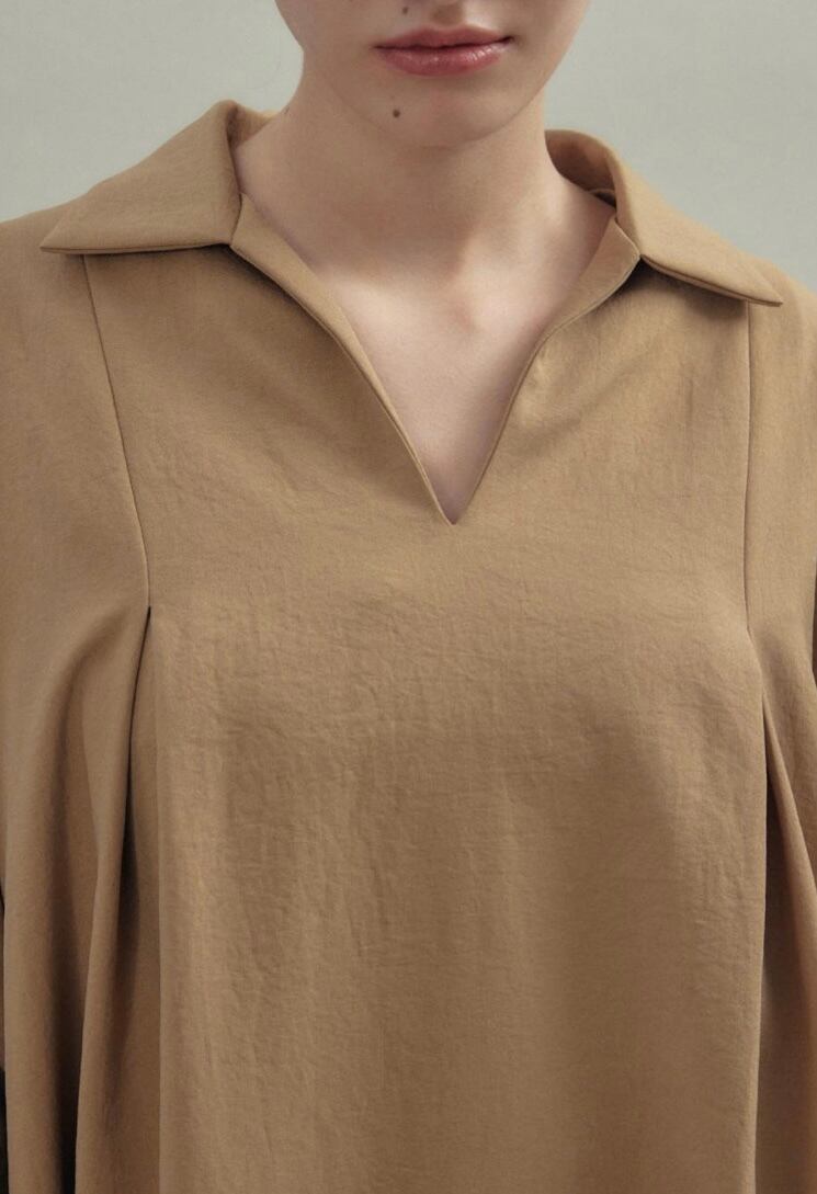 ストレッチ性に優れたポリエステルを使用しているのでとても着心地の良いドレスです。身体を包み込むゆったりとしたシルエットでリラックス感がありつつも、スキッパーデザインで首回りをスッキリと見せてくれるクリーンな雰囲気に仕上げた1着。タックディテールを施すことで動きを感じさせる軽やかなデザインに。合わせるアイテム次第でお出かけにはもちろん、セレモニーなど様々なシーンで活躍する一着です。