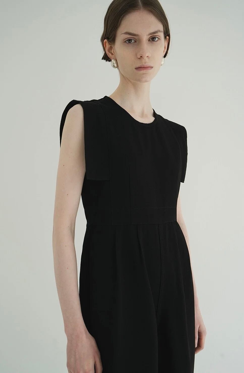 CLANE SQUARE SLEEVE DENIM ALL IN ONE -BLACK-