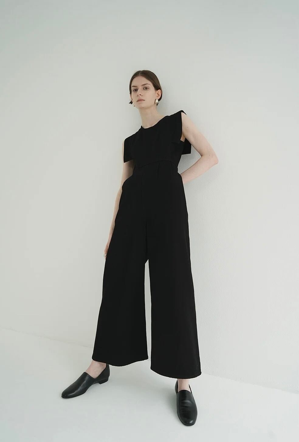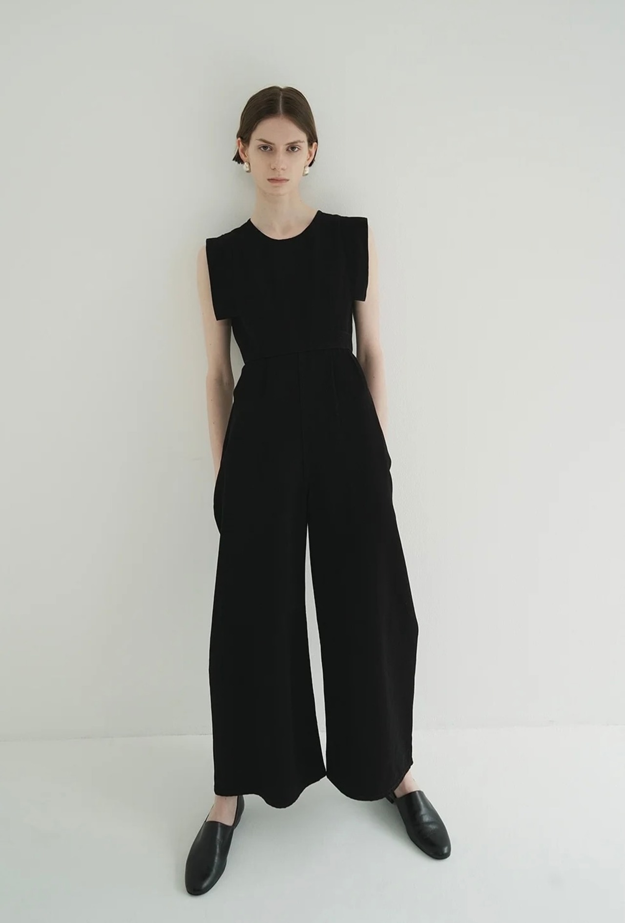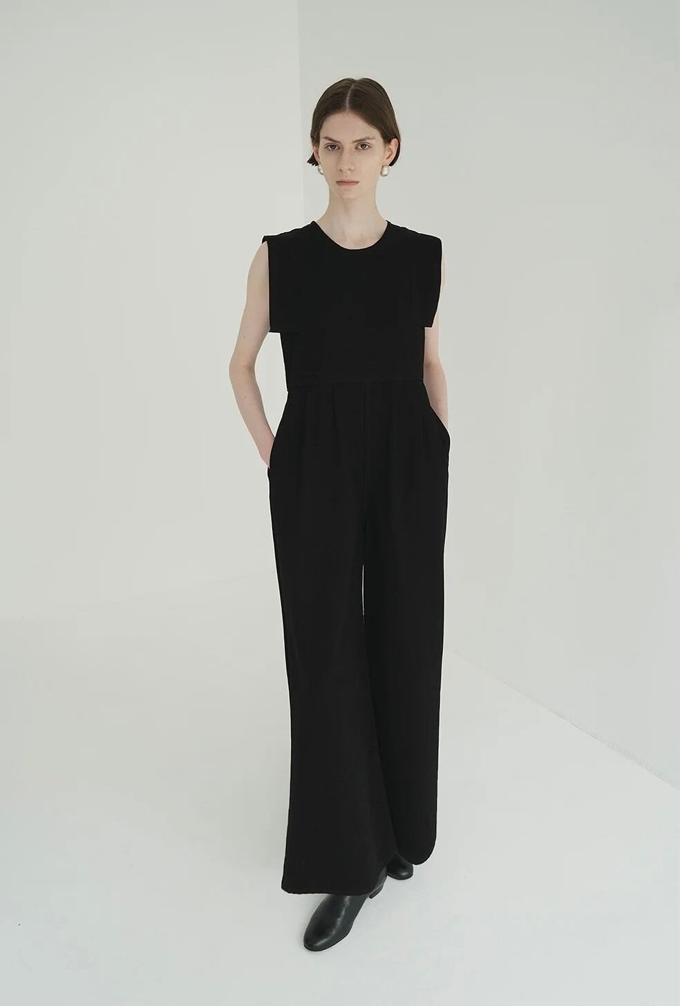 人気ディテールのスクエアスリーブを取り入れた、シンプルかつモードな印象のオールインワン。