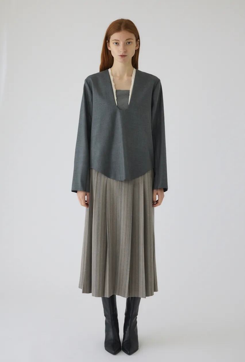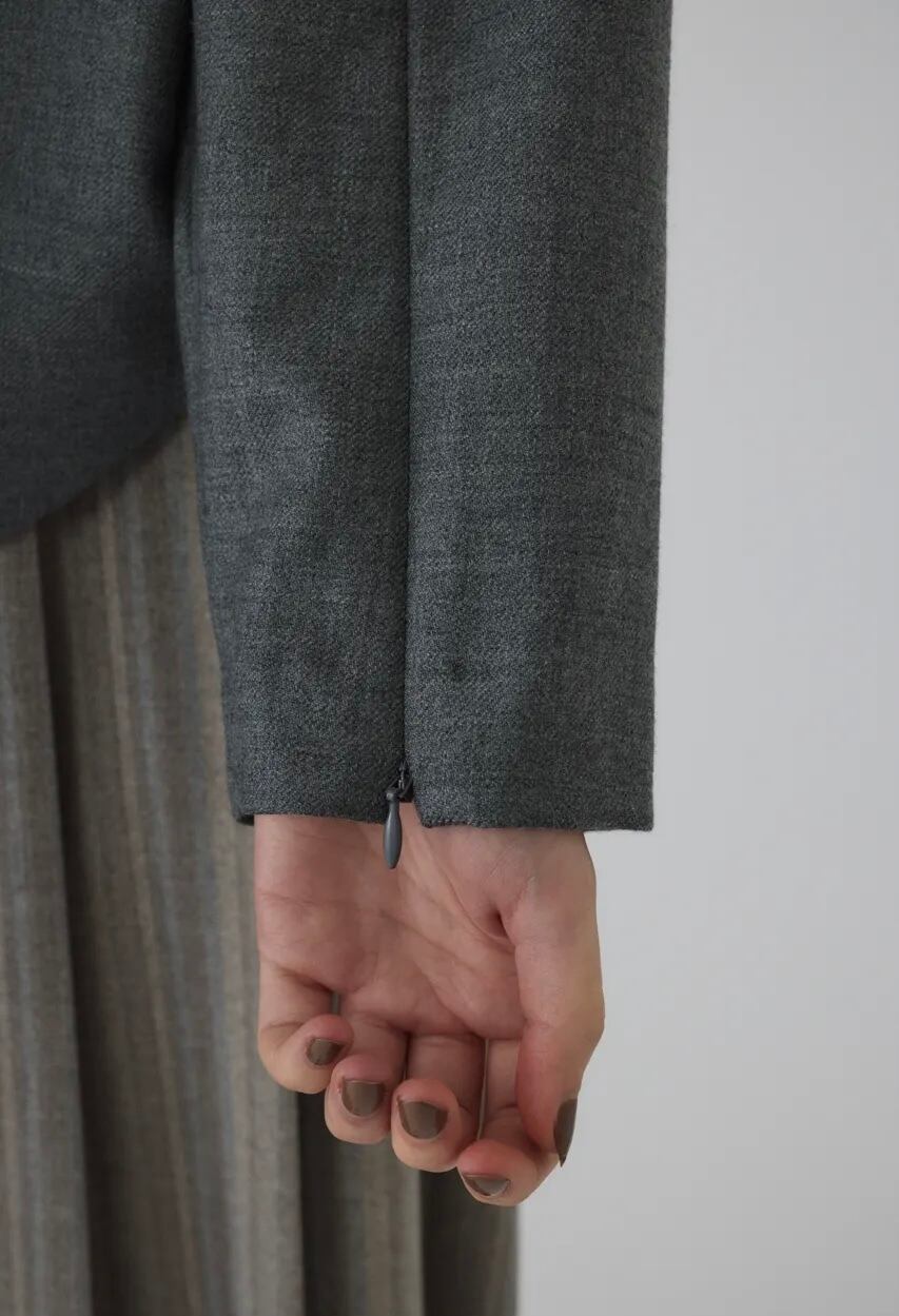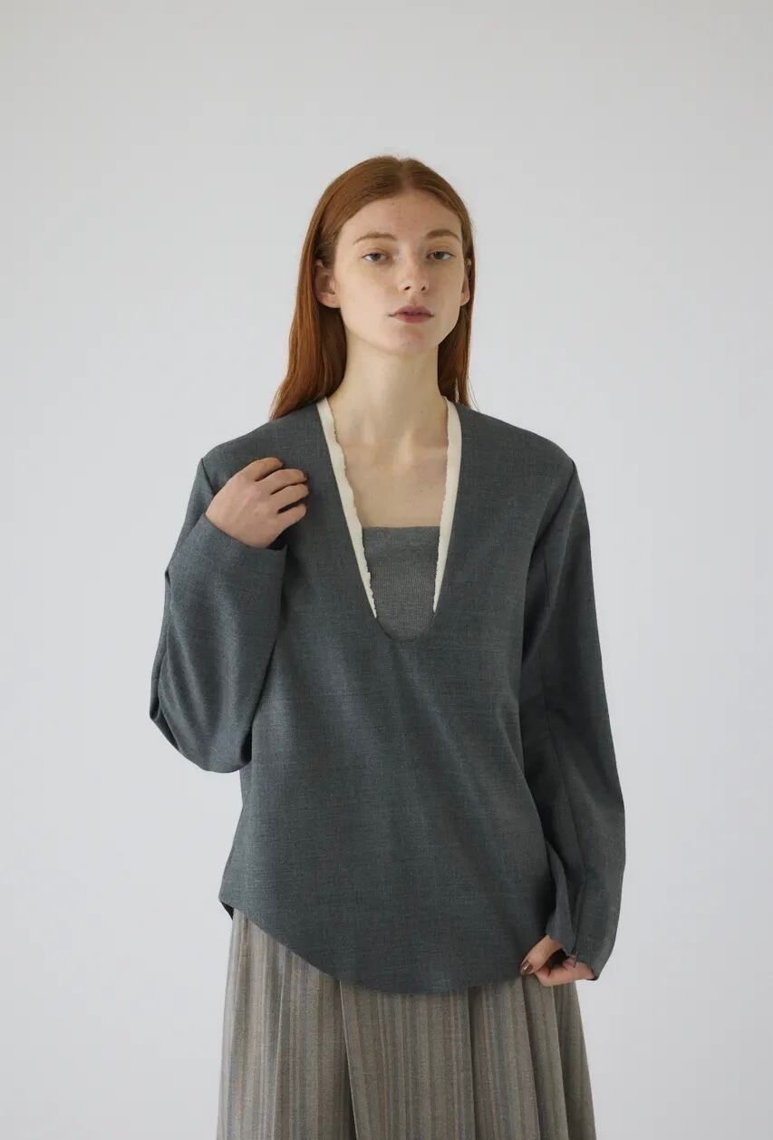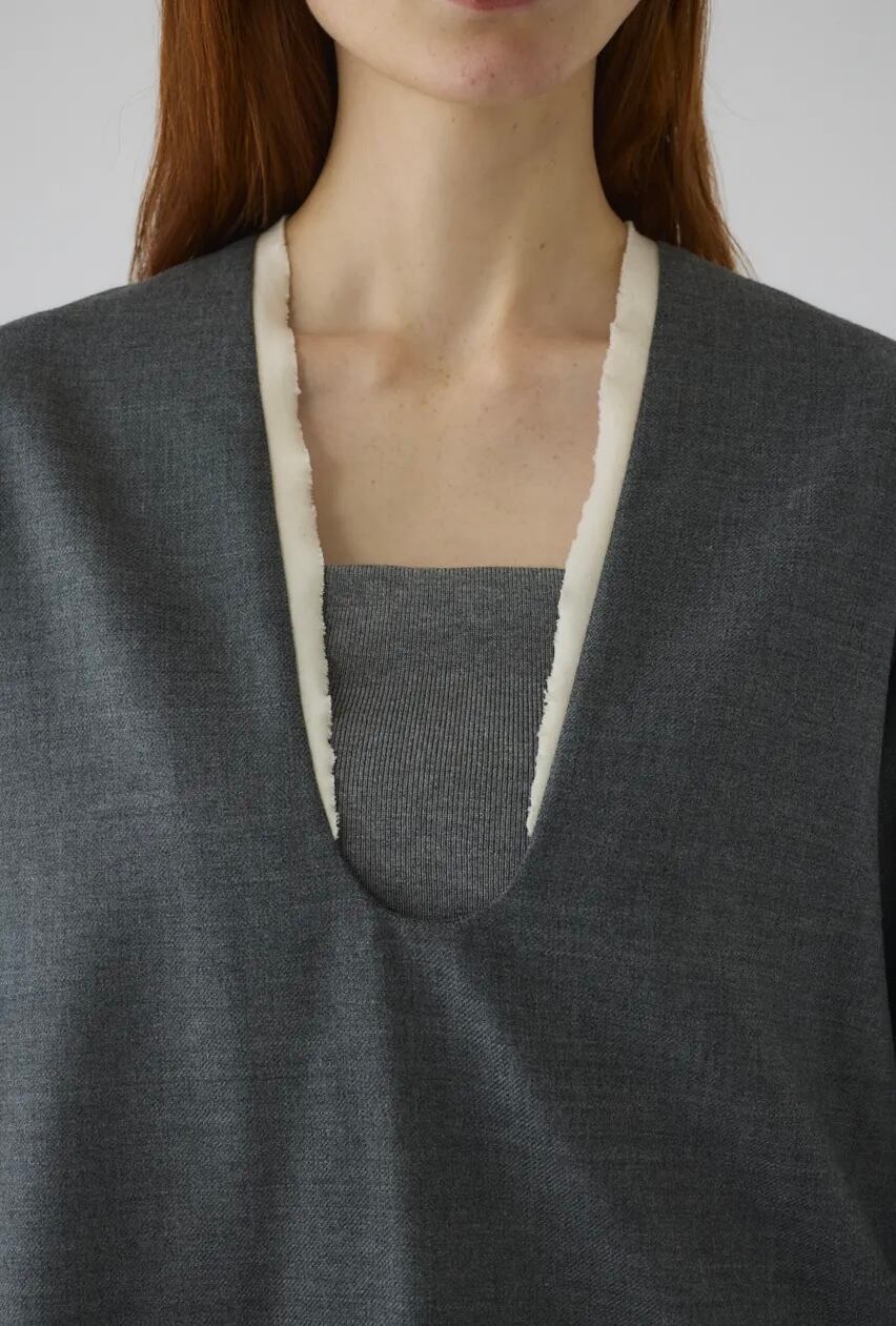 ■DETAIL:袖口にはコンシールファスナーを施し、深いUネックから別布が覗くデザインがモダンでシックな印象を演出。