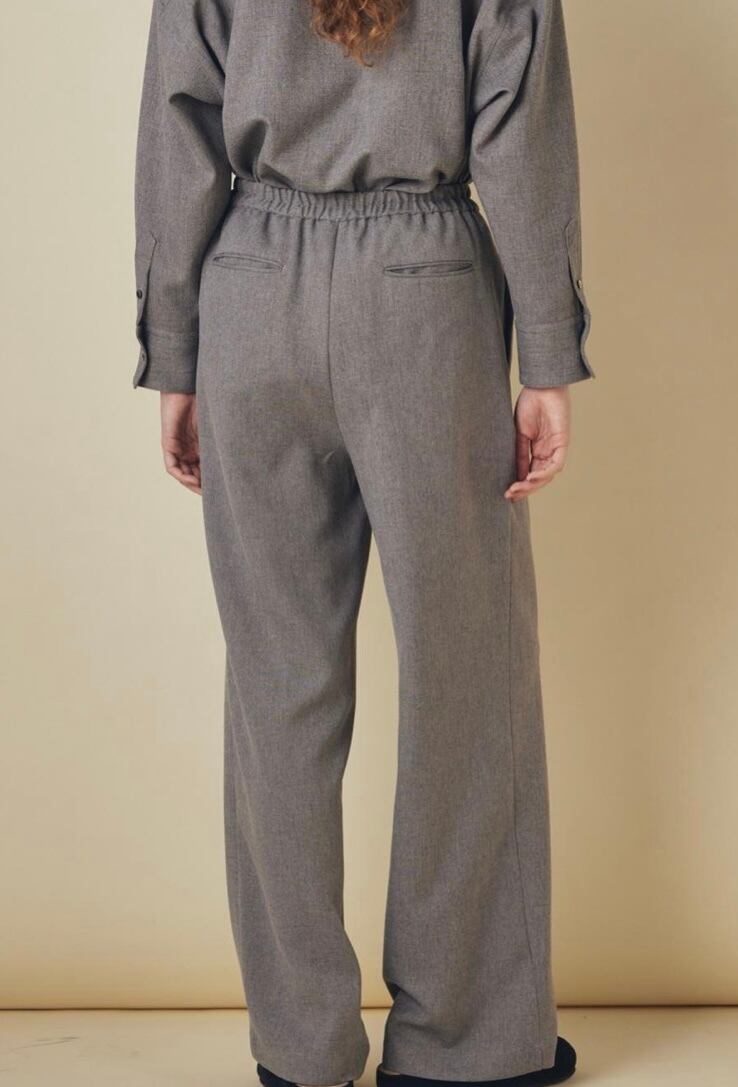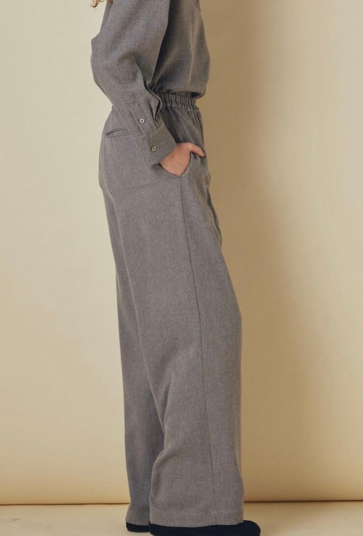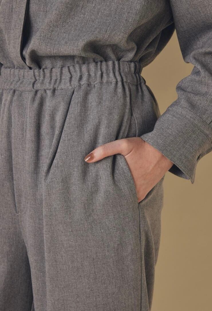 季節感のあるコーディネートに仕上がるワイドパンツは、取り扱いがしやすいポリエステル素材でありながら、ウールのような温かみのある風合いが特徴です。シンプルなニットやカットソーを合わせるだけで、こなれた印象になるマニッシュなシルエット。ウエストはノンストレスなゴム仕様で気負わずに着用していただけます。同素材のシャツブラウスやワンピースとセットでの着用もおすすめです。トレンドに左右されないベーシックなデザインで、毎日のワードローブにぴったりの一枚です。