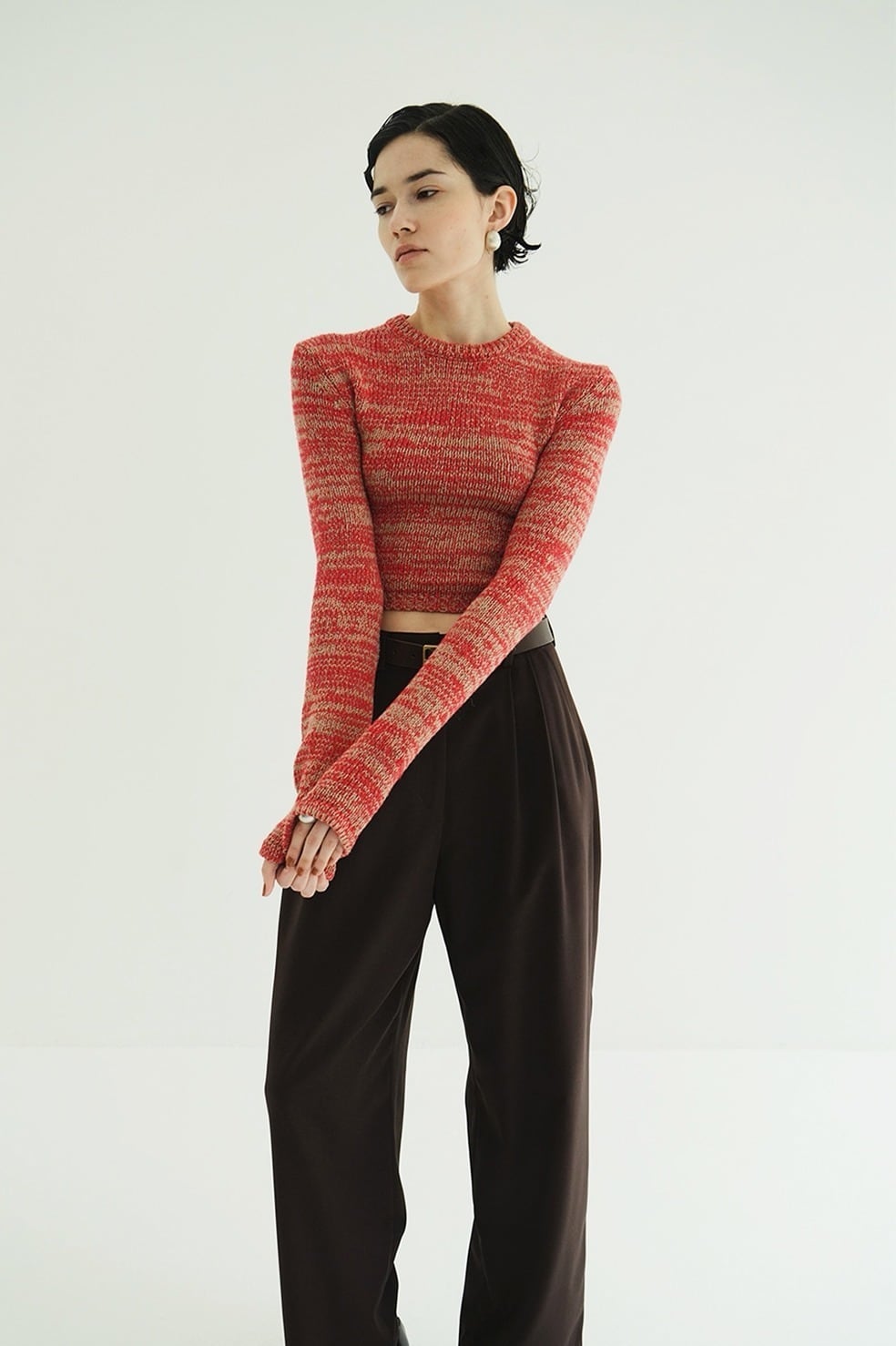 太さの異なる3種類の糸をミックスすることで生まれる立体的な風合いもポイント。シンプルな単色はもちろん、スタイリングのアクセントになるミックスカラーもおすすめです。