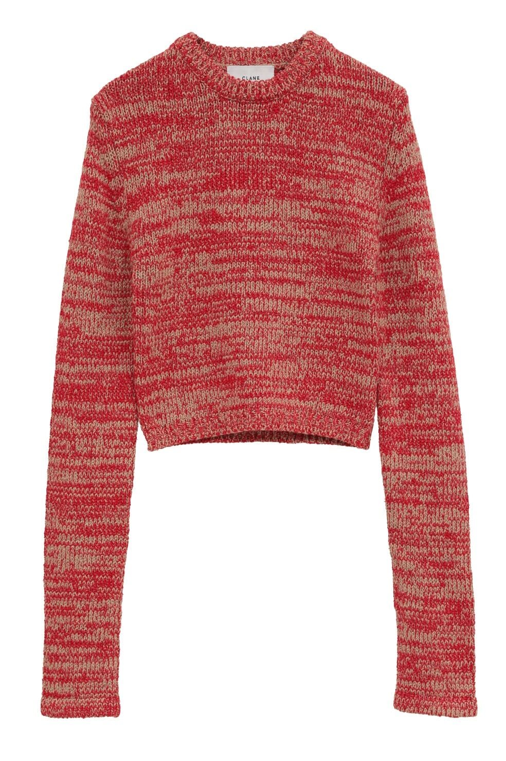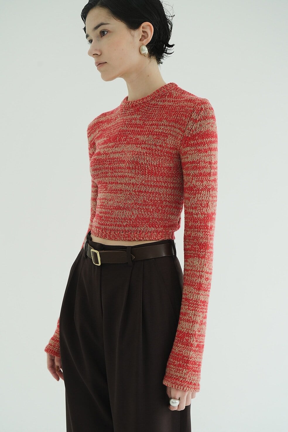 CLANE COTTON SHORT KNIT TOPS -RED-