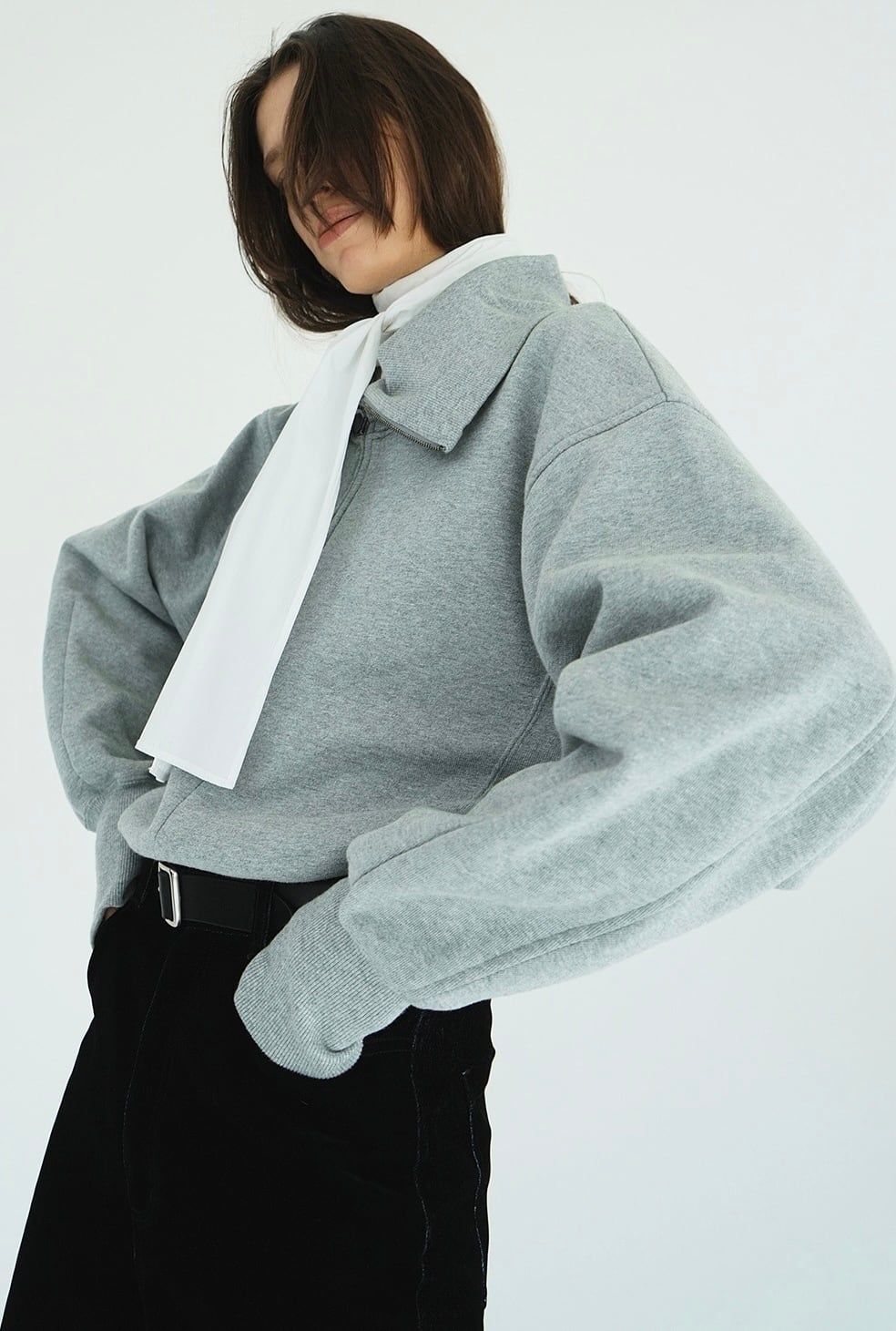 CLANE HALF ZIP SHORT TOPS -GRAY-