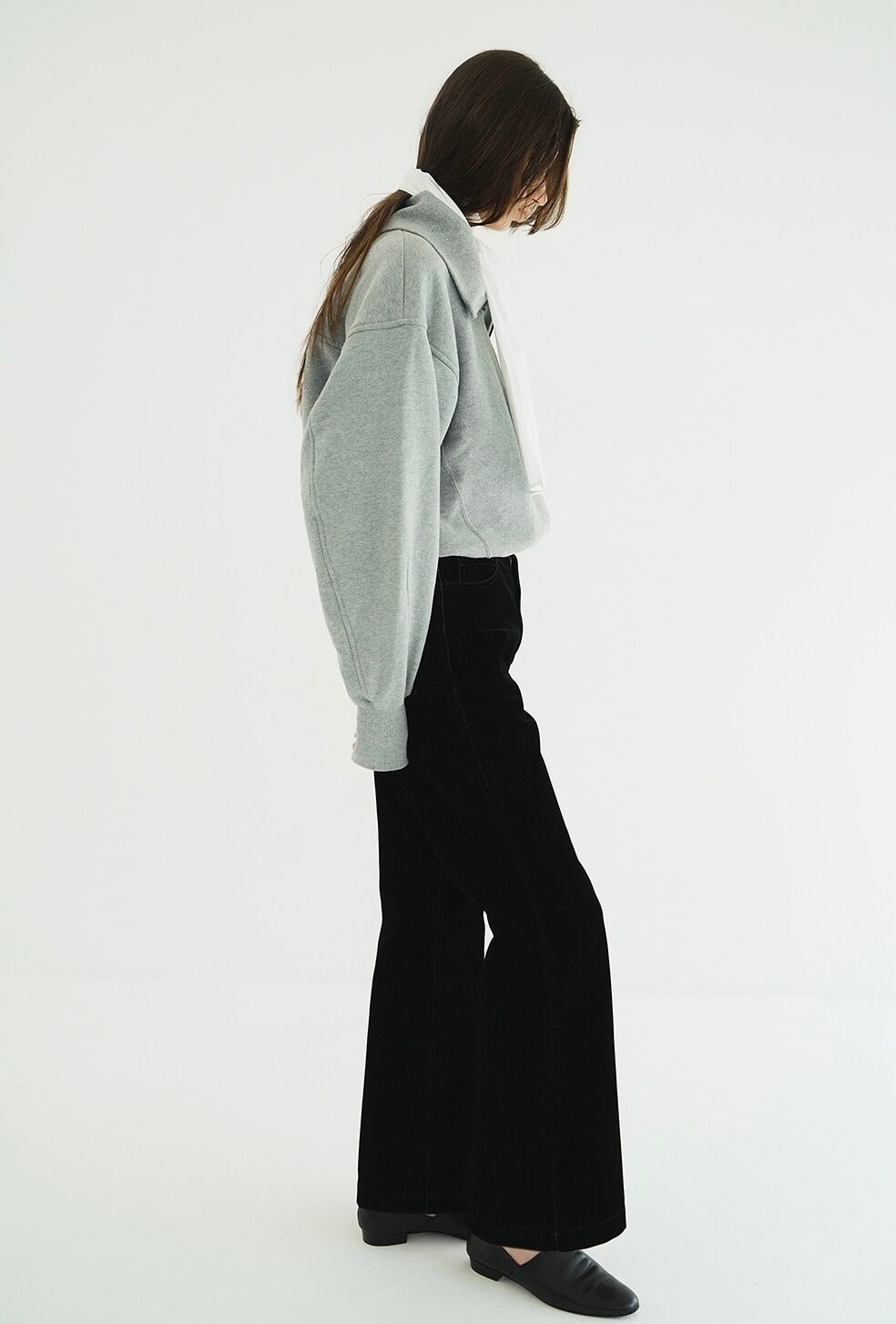 程よいハリとボリュームのある裏毛素材を使用し、表面はクリーンな質感に、裏面は起毛加工でふんわりとした温かみのある肌触りに仕上げました。