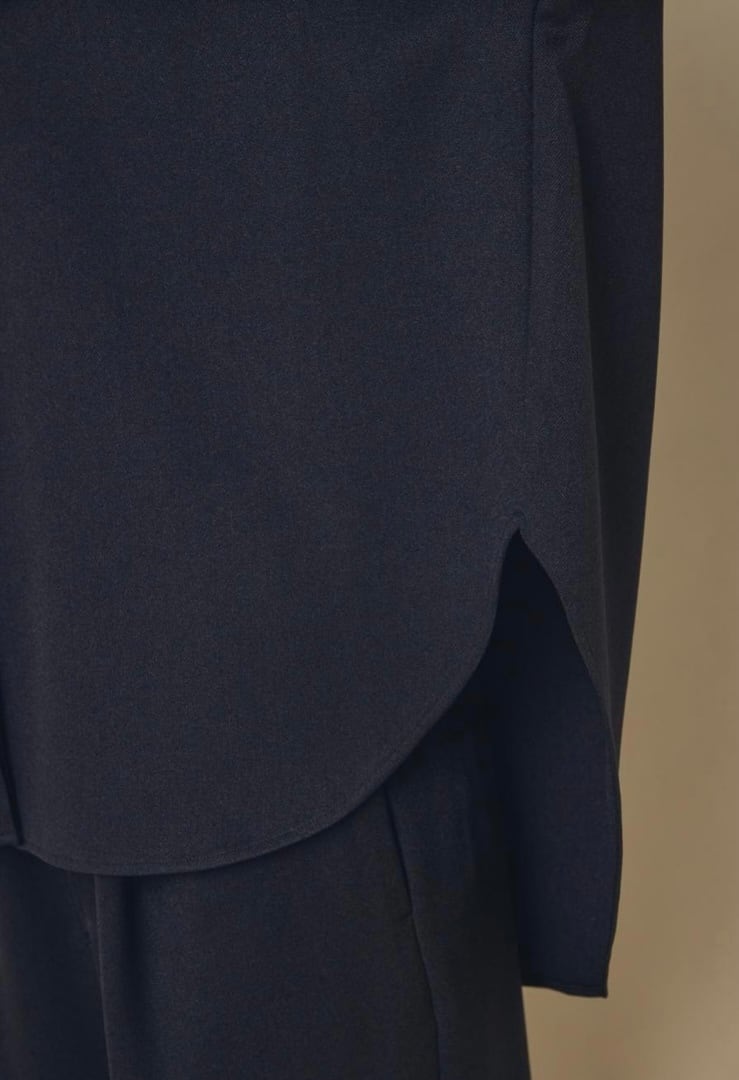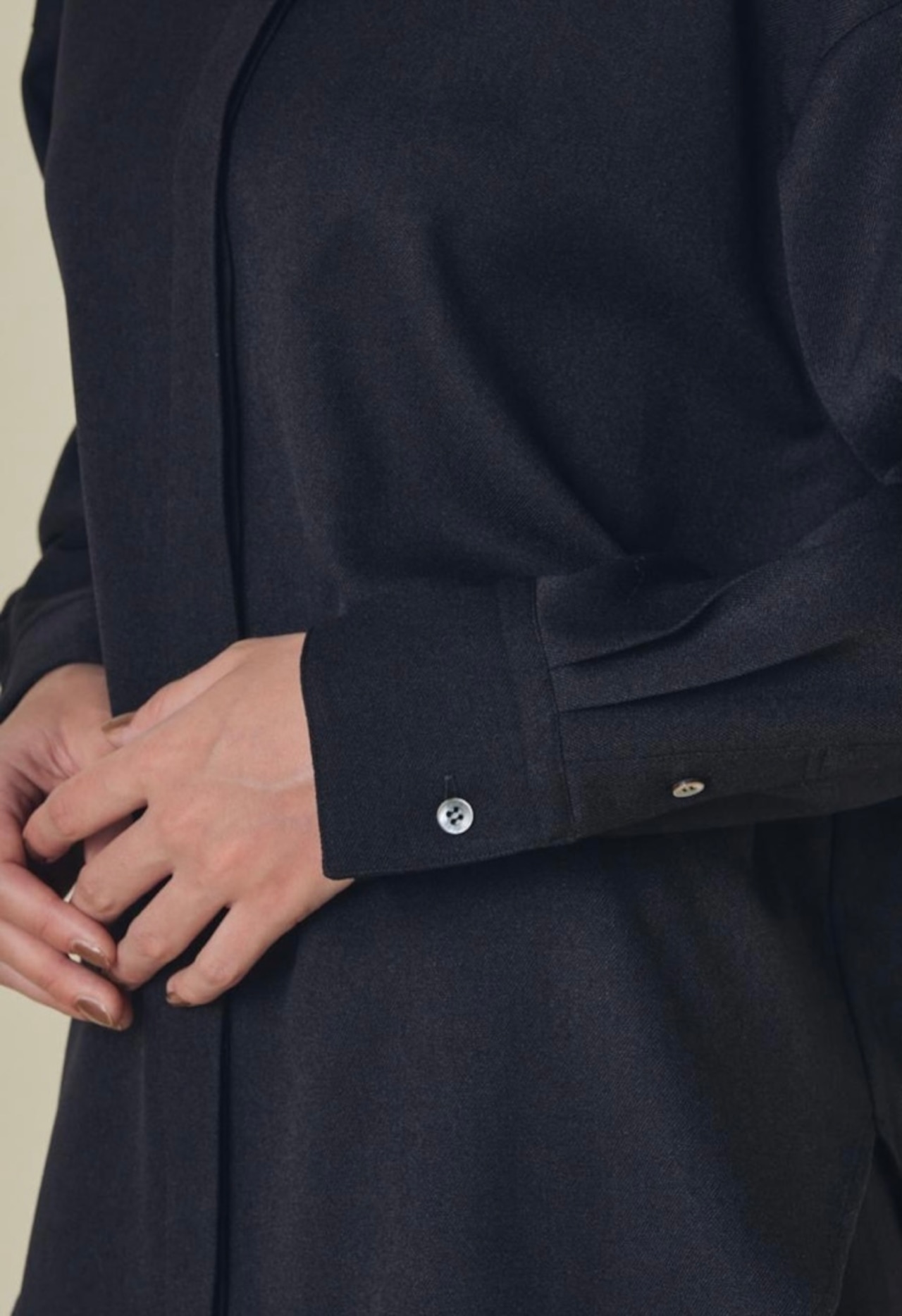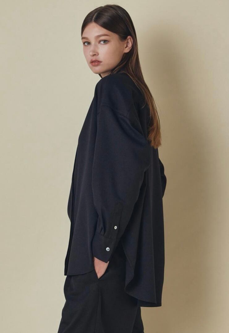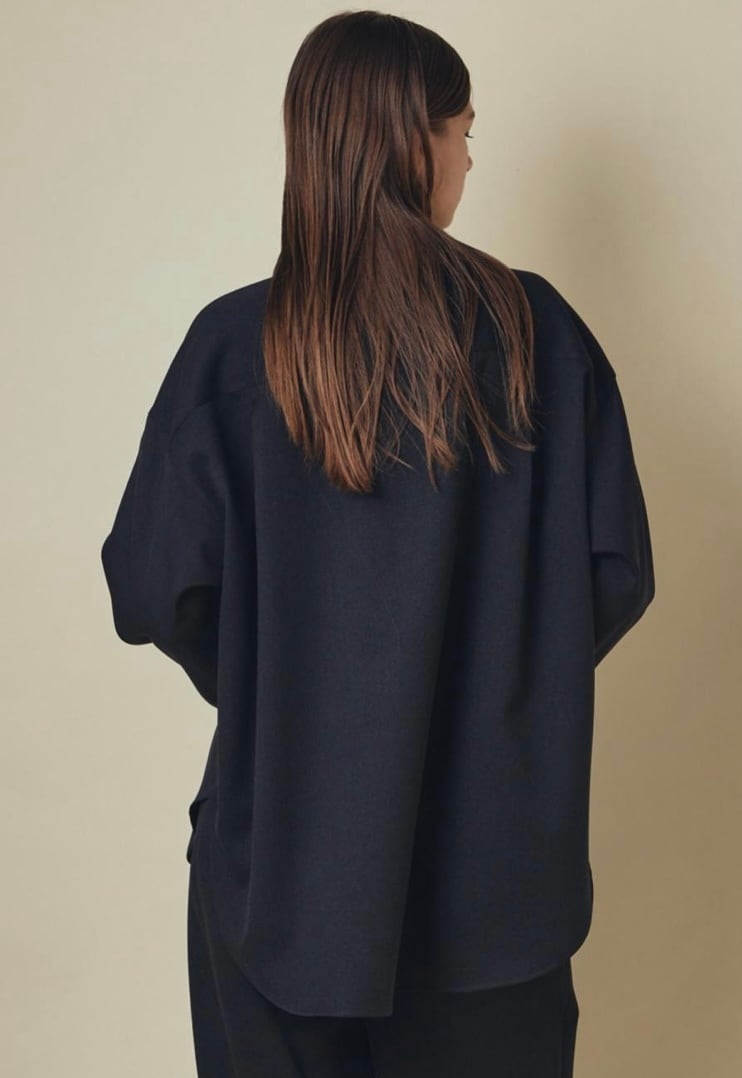 トラッドなムードを感じさせるメンズライクなデザインながら、シルエットやディテールに女性らしさが漂うシャツブラウス。取り扱いがしやすいポリエステル素材ですが、ウールのような温かみのある風合いが特徴で、季節感のあるコーディネートに仕上がります。同素材のワイドパンツとのセットアップスタイルは、程よくゆとりのあるシルエットにより抜け感のあるクールなスタイリングが完成。様々なコーディネートにフィットする頼れる一枚です。