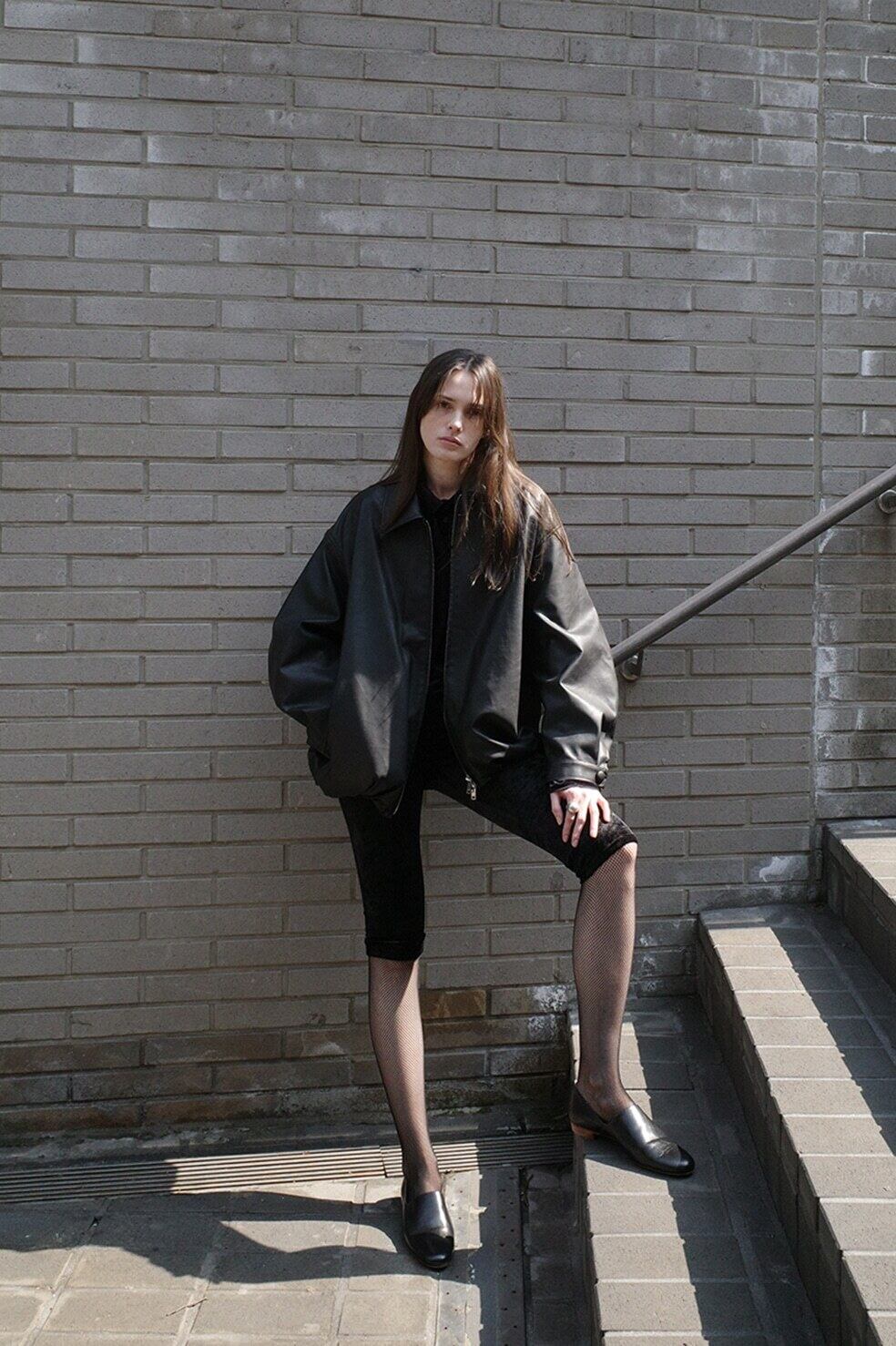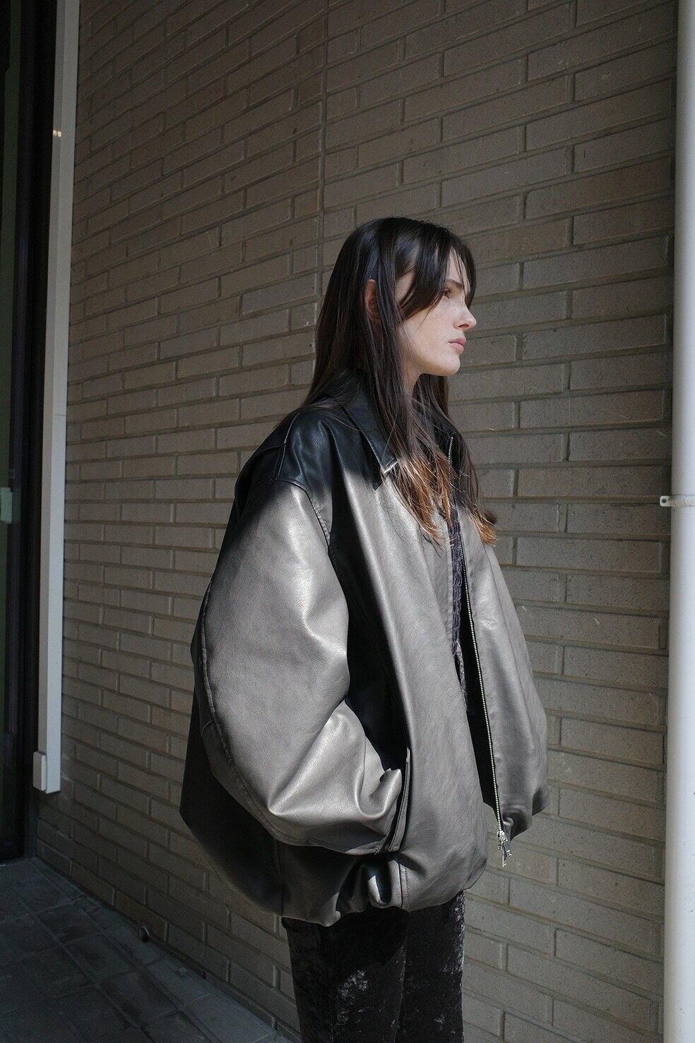 バルーンシルエットが特徴的なフェイクレザージャケット。