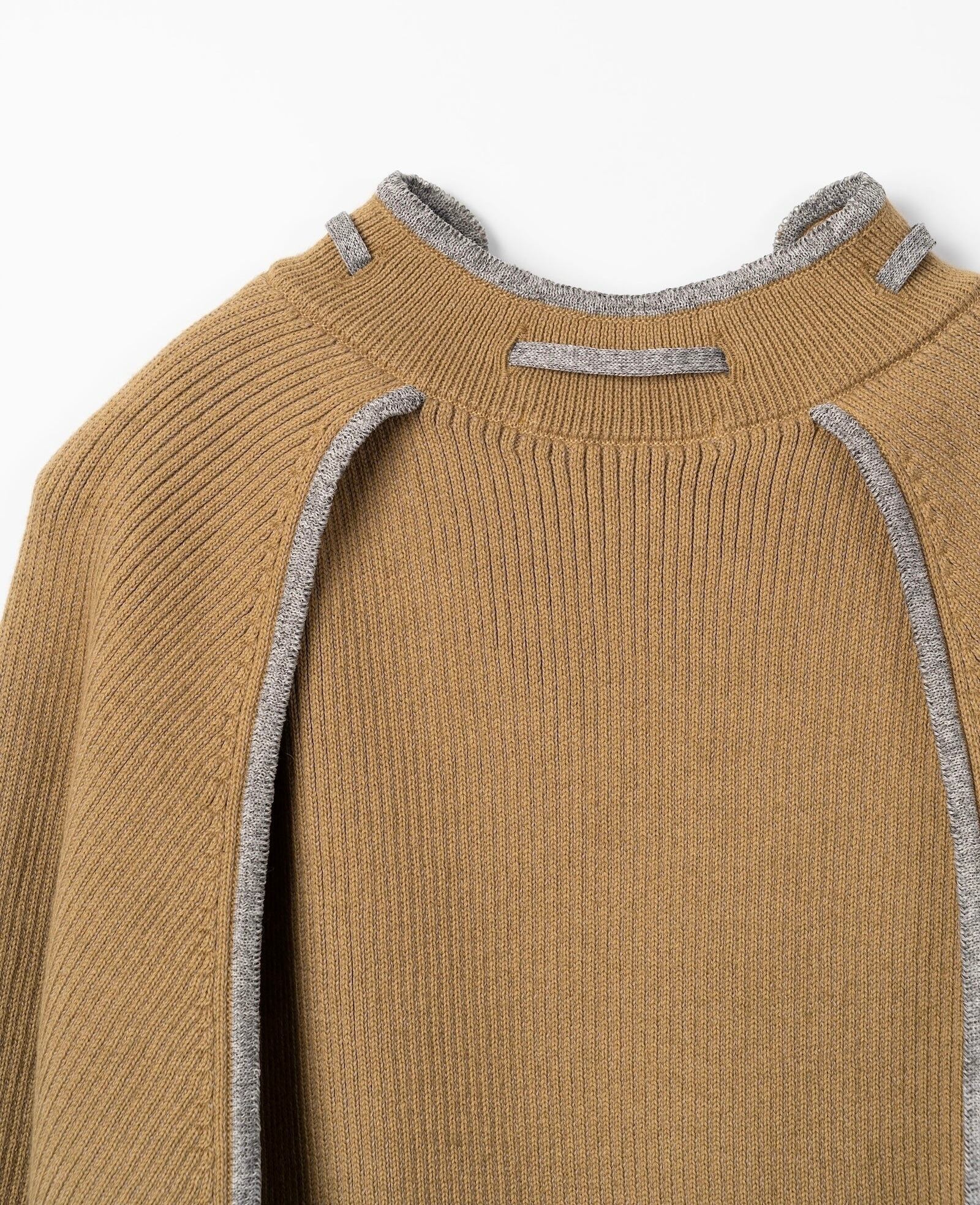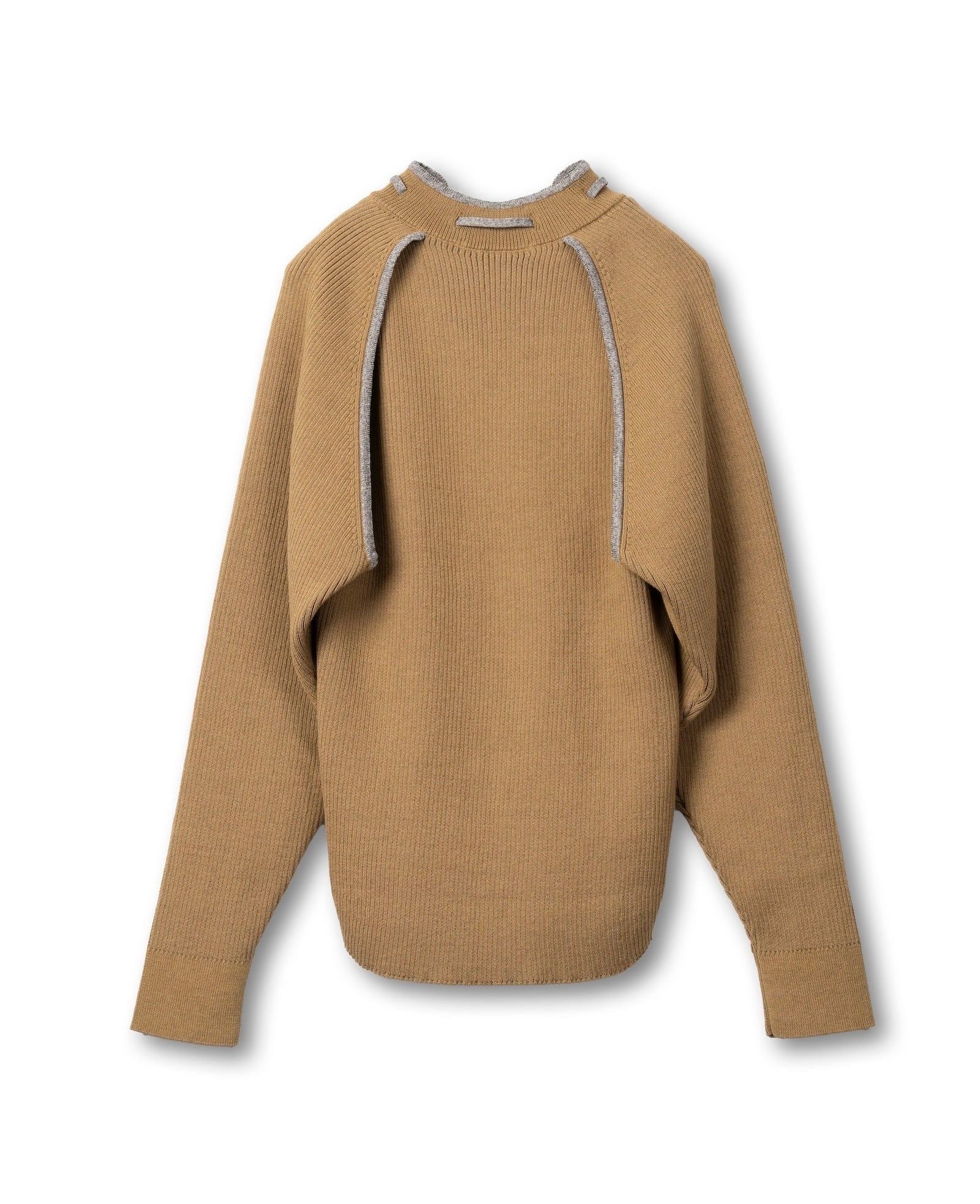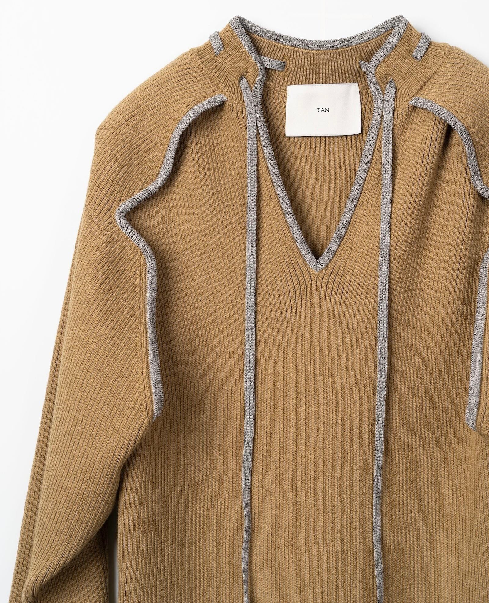 TAN OPEN SLEEVE V/NECK KNIT TOP -CAMEL-