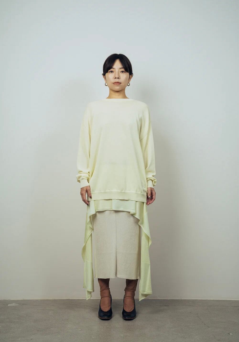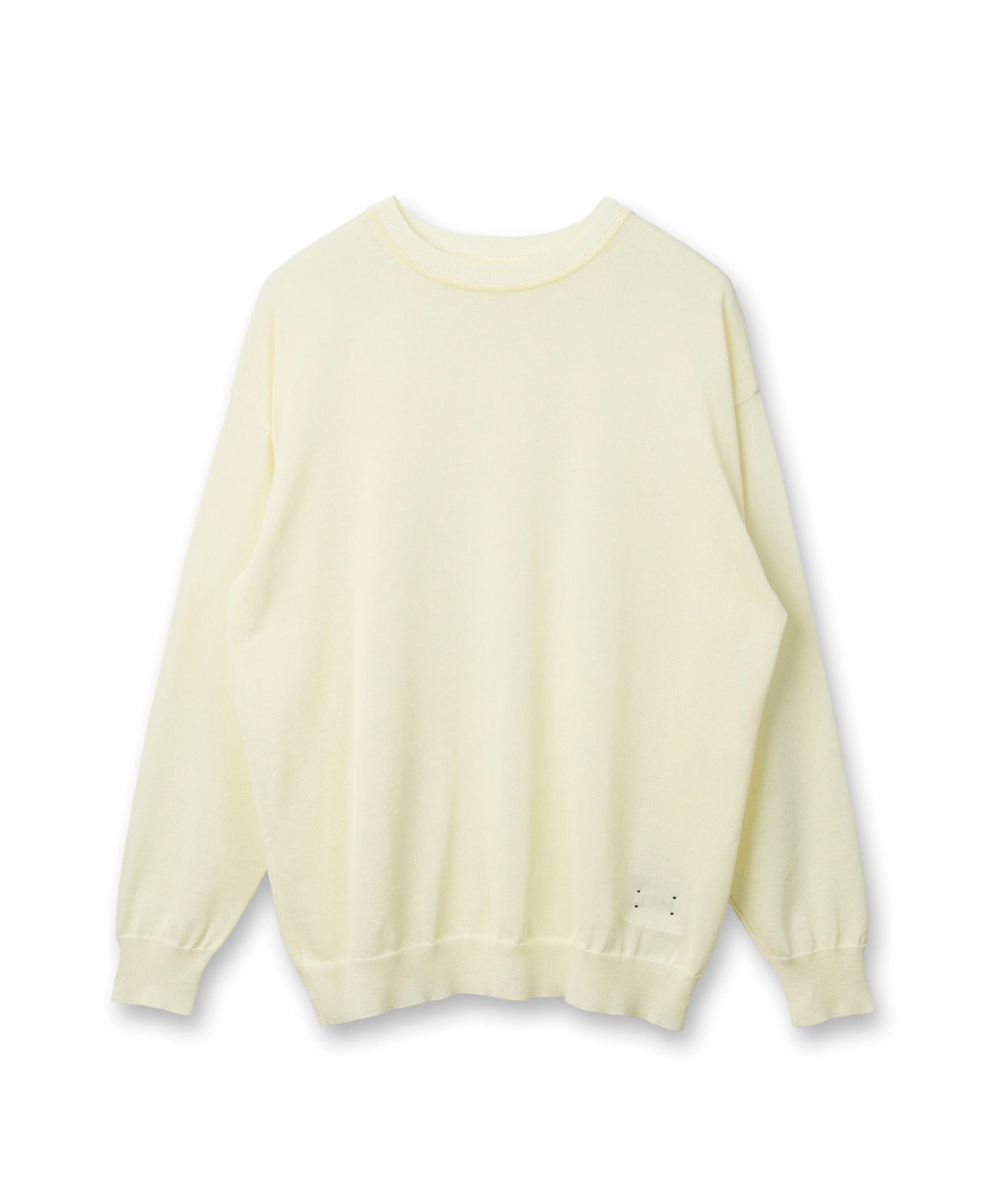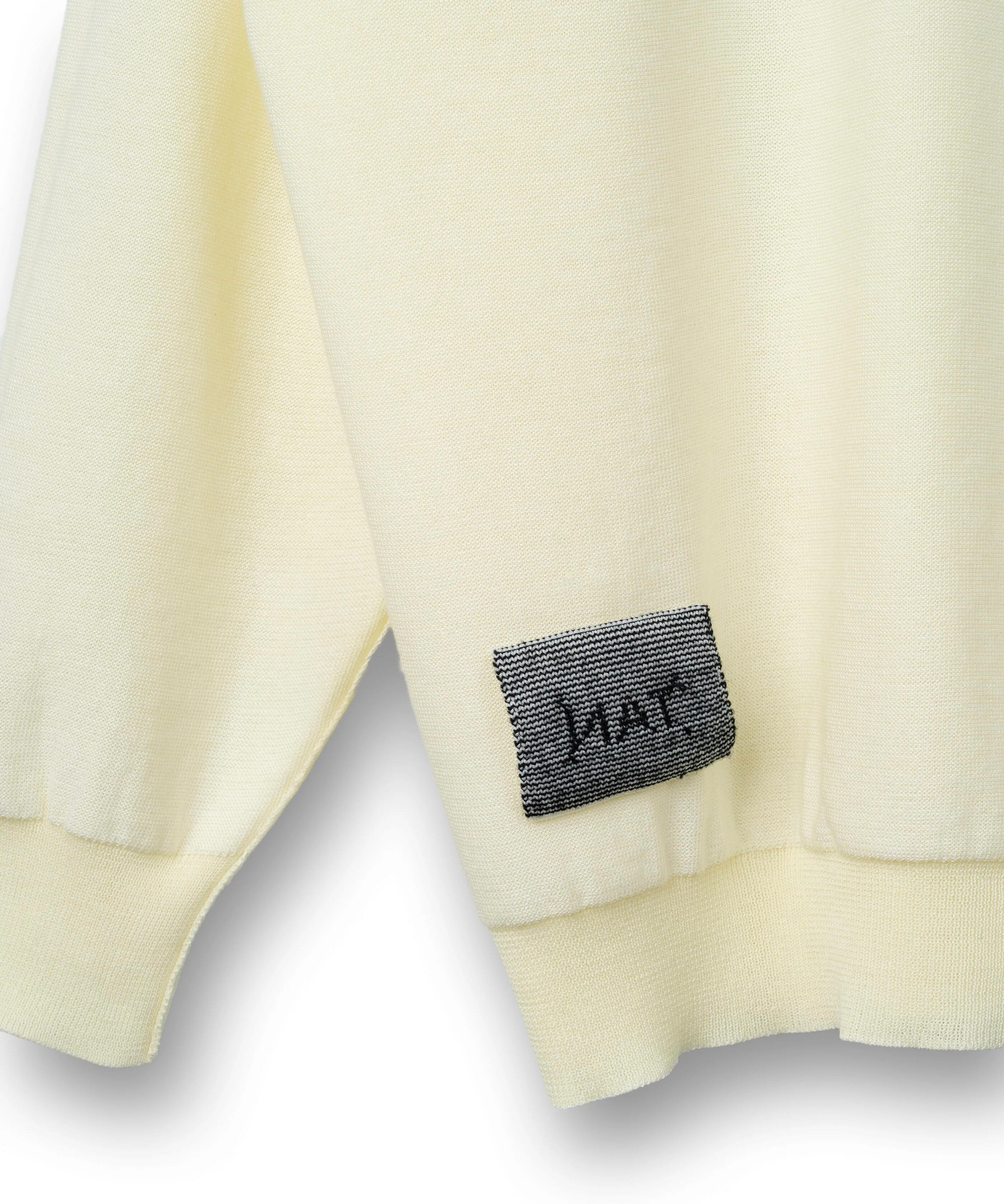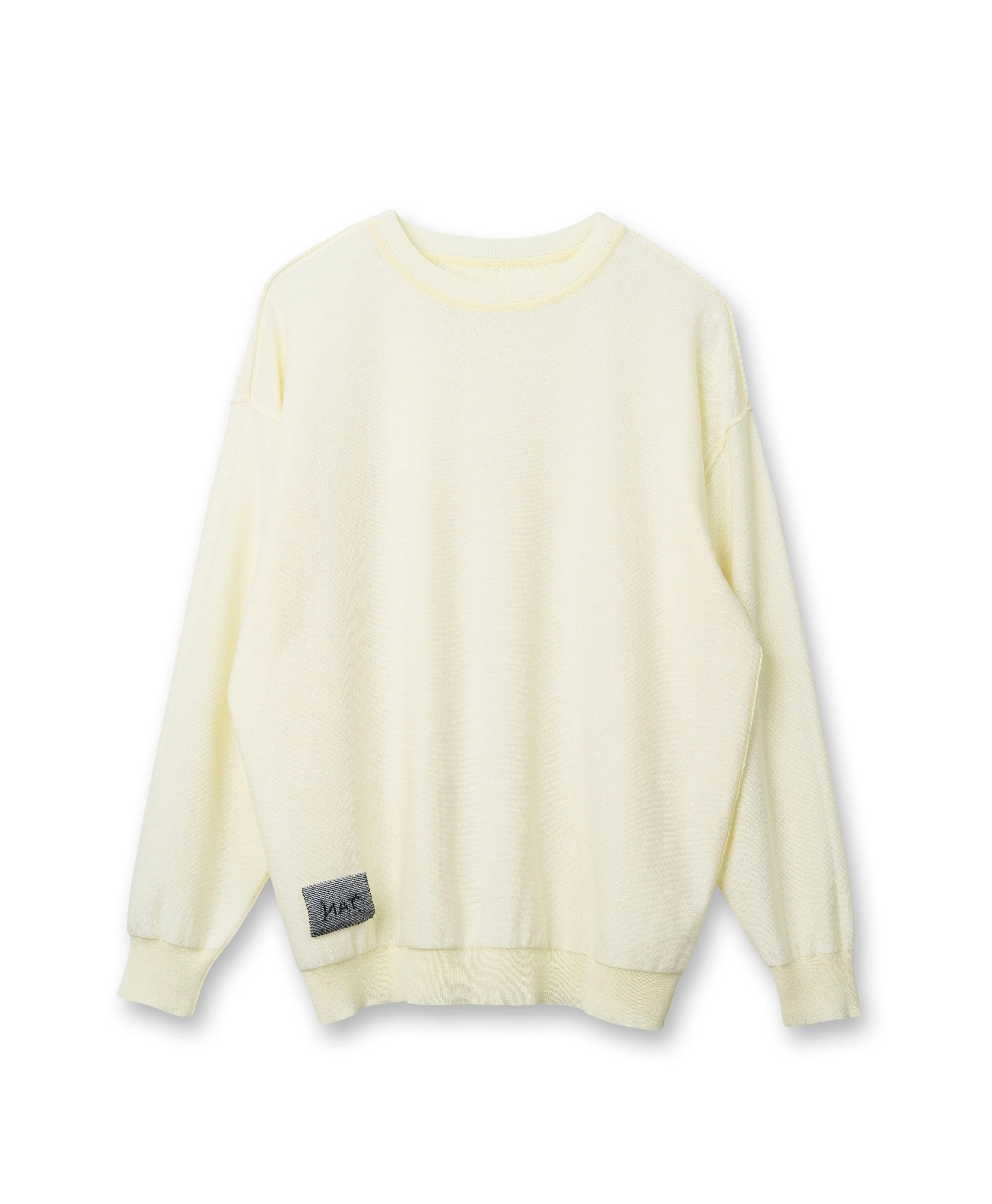 リバーシブル仕様のリラックスサイズプルオーバー。 表側では、ニットネームのTANロゴがほんのり透けて見えるデザイン。 プレーティング技法を用いて、素材も色も異なる糸を表裏で編み分けることで、リバーシブルでの着用を実現。