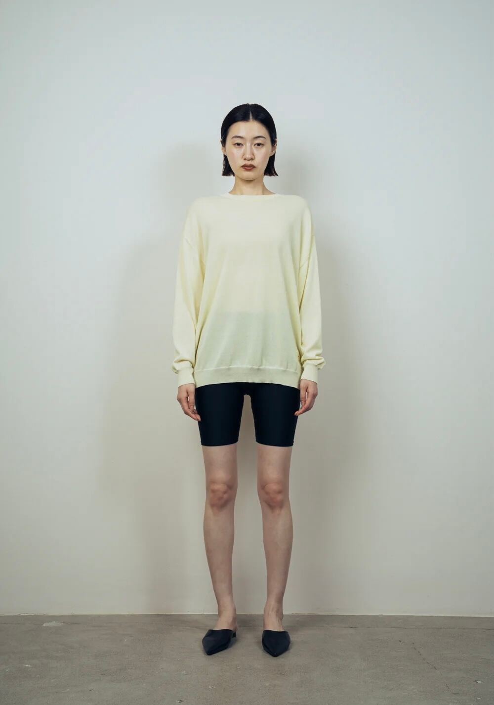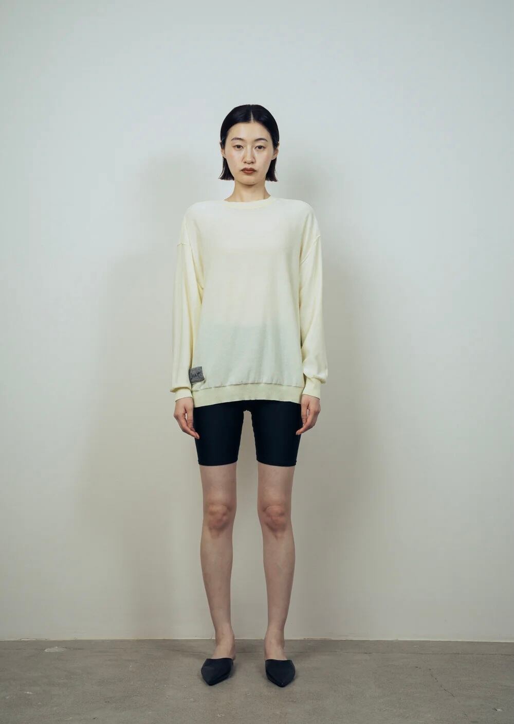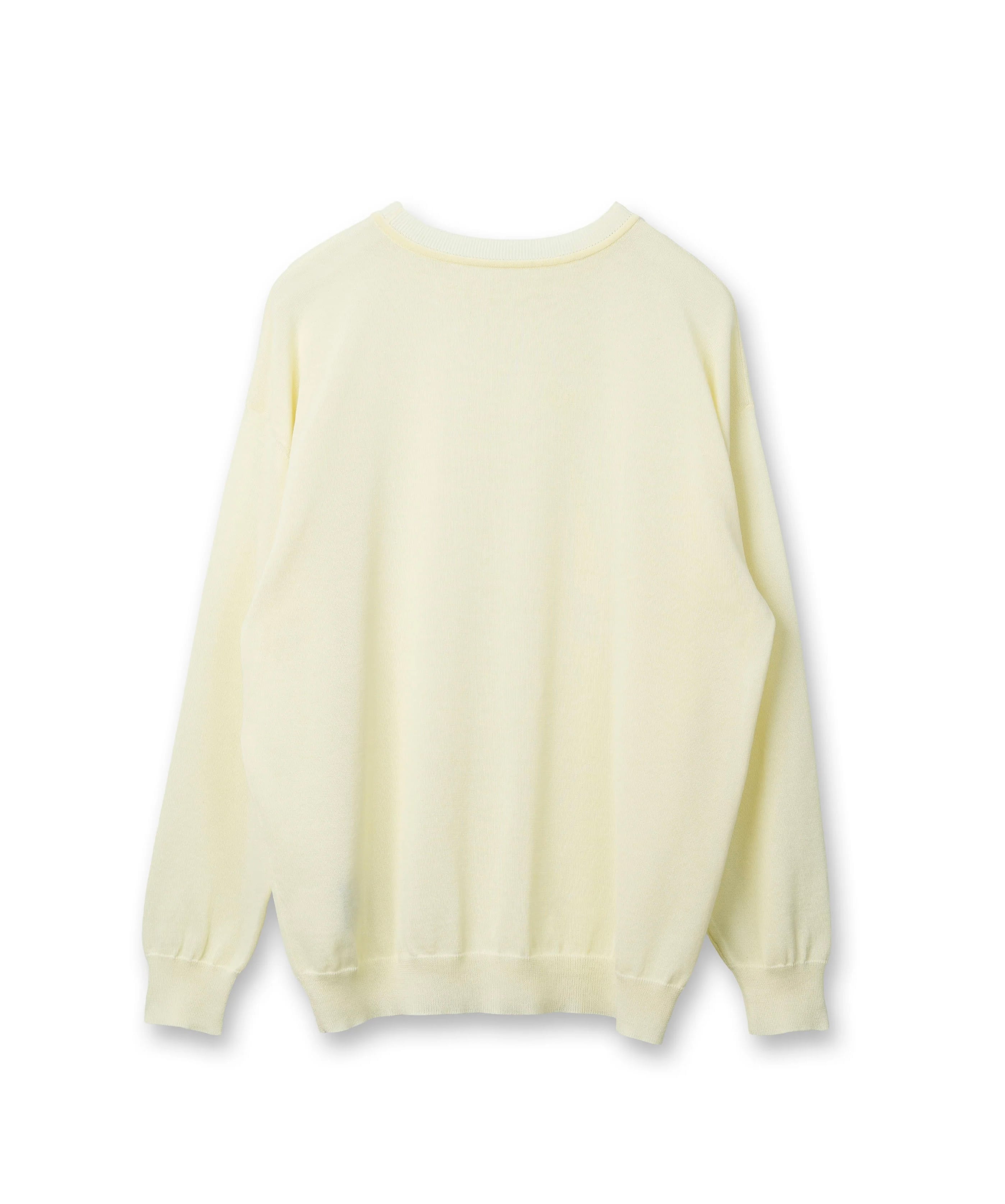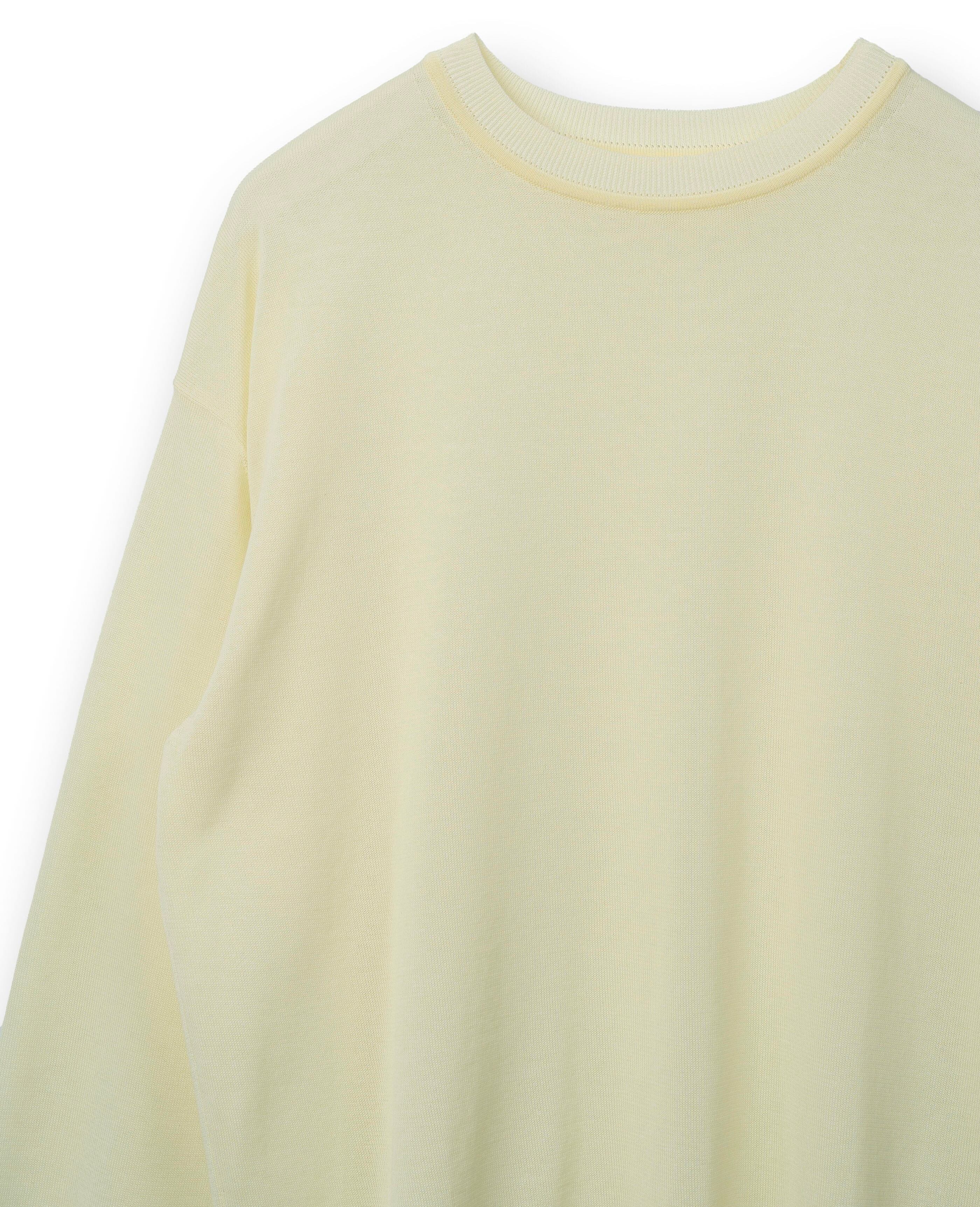 リバーシブル仕様のリラックスサイズプルオーバー。 表側では、ニットネームのTANロゴがほんのり透けて見えるデザイン。 プレーティング技法を用いて、素材も色も異なる糸を表裏で編み分けることで、リバーシブルでの着用を実現。