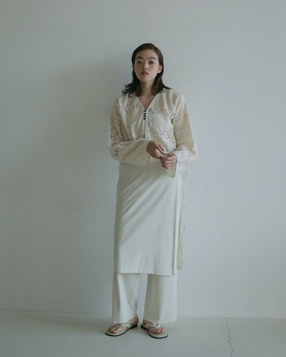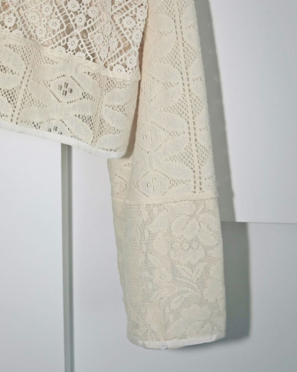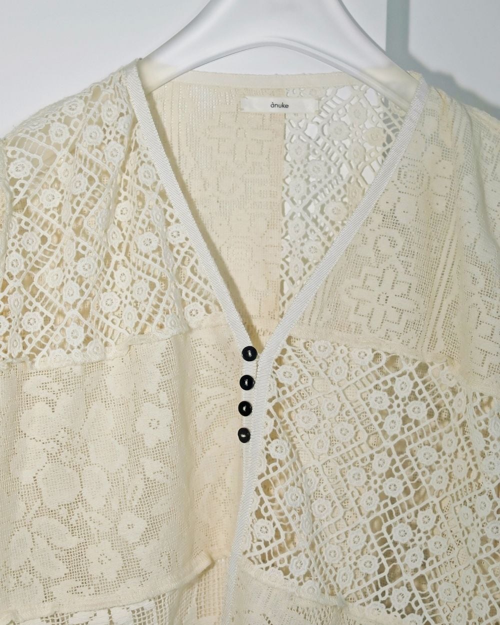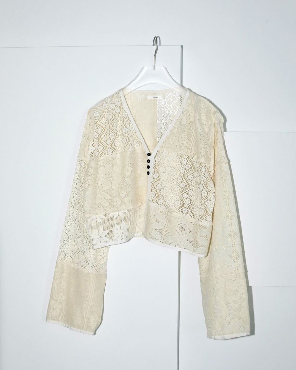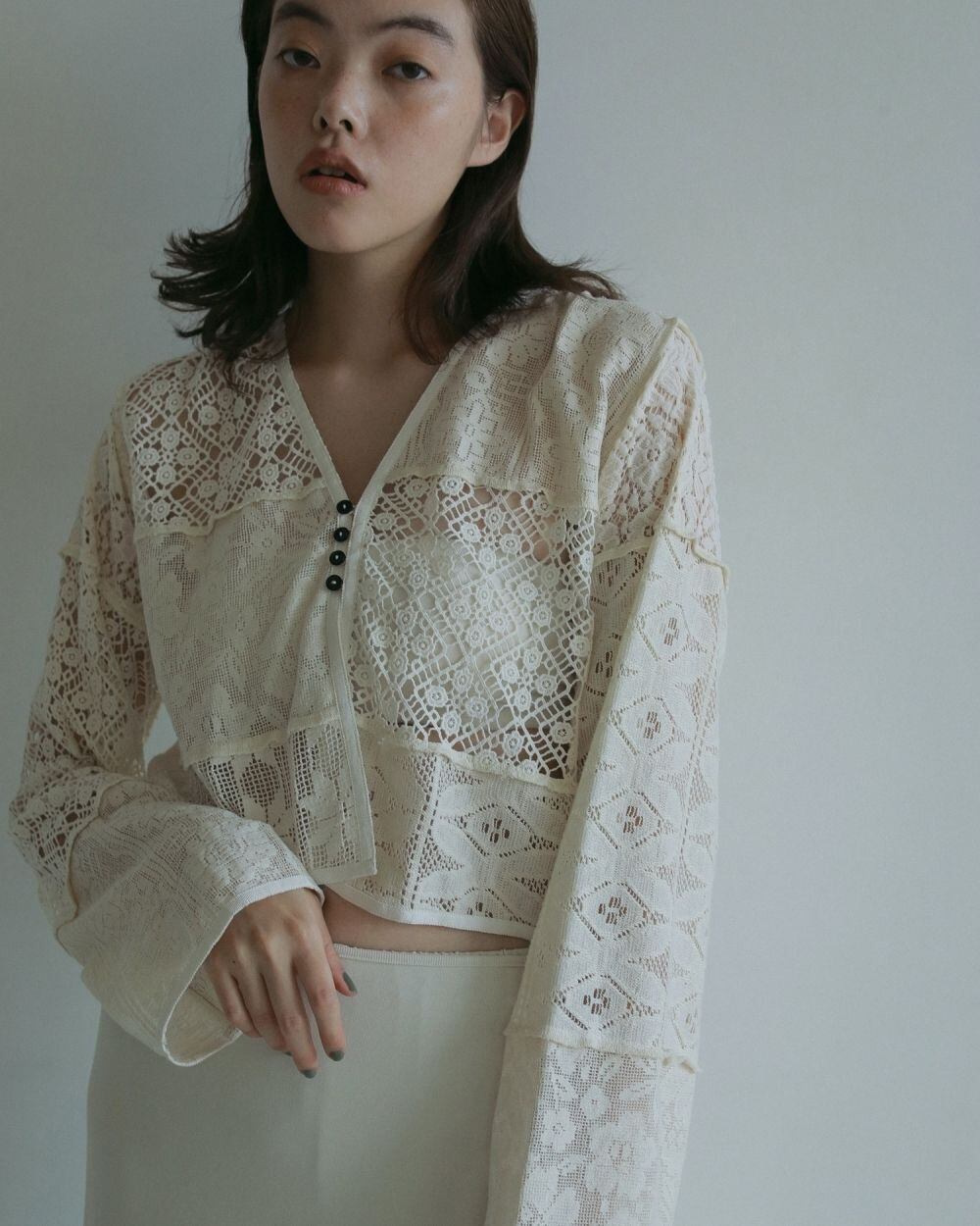 様々なレースを組み合わせたパッチワークトップス。雰囲気の違うレースを合わせることで、立体感ある表情豊かな一枚に仕上げました。シンプルなボトムに合わせるだけでコーデが華やぐ主役トップスです。