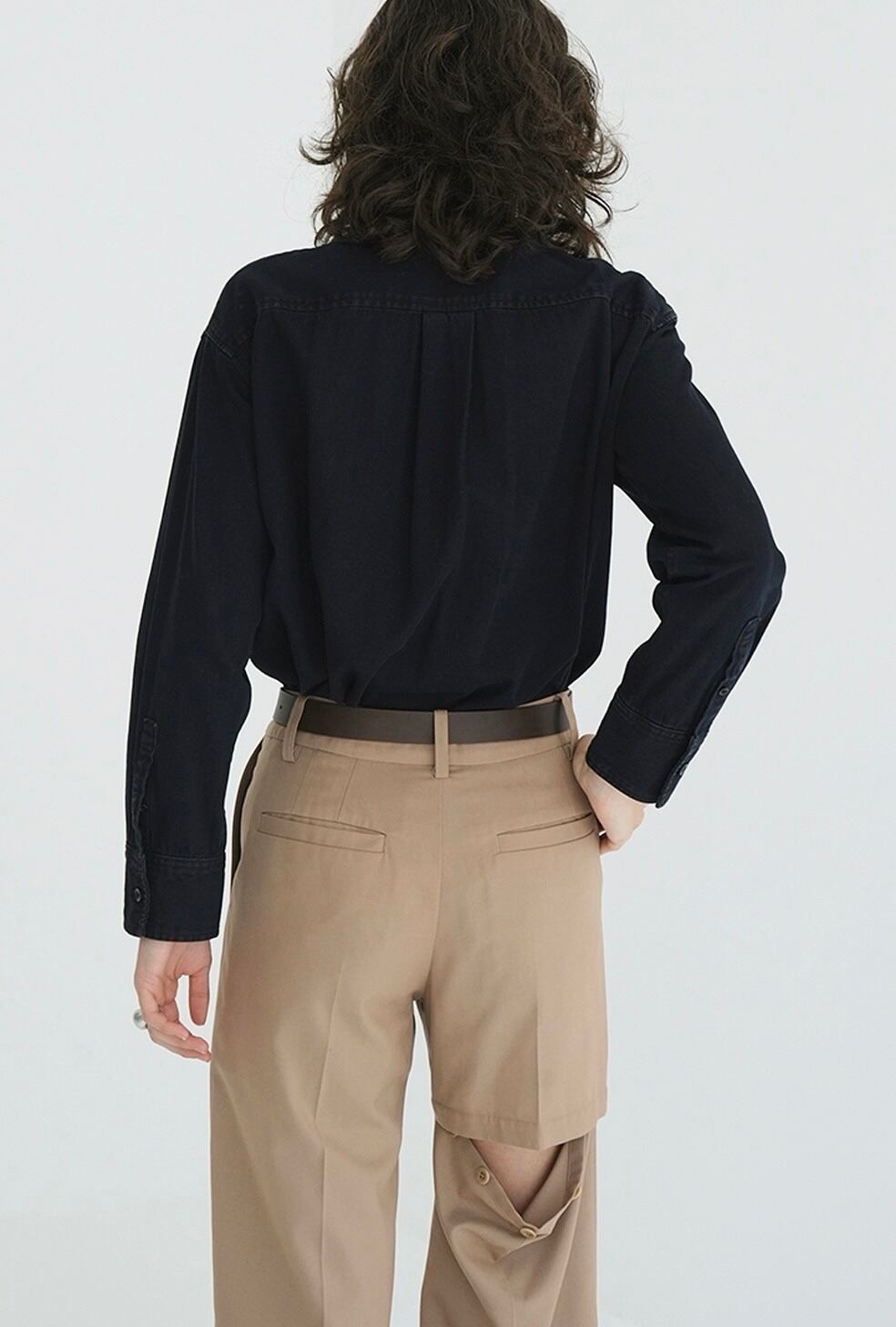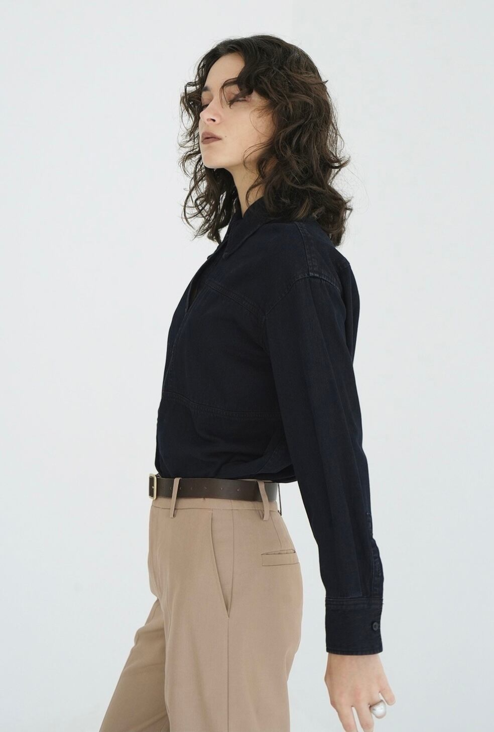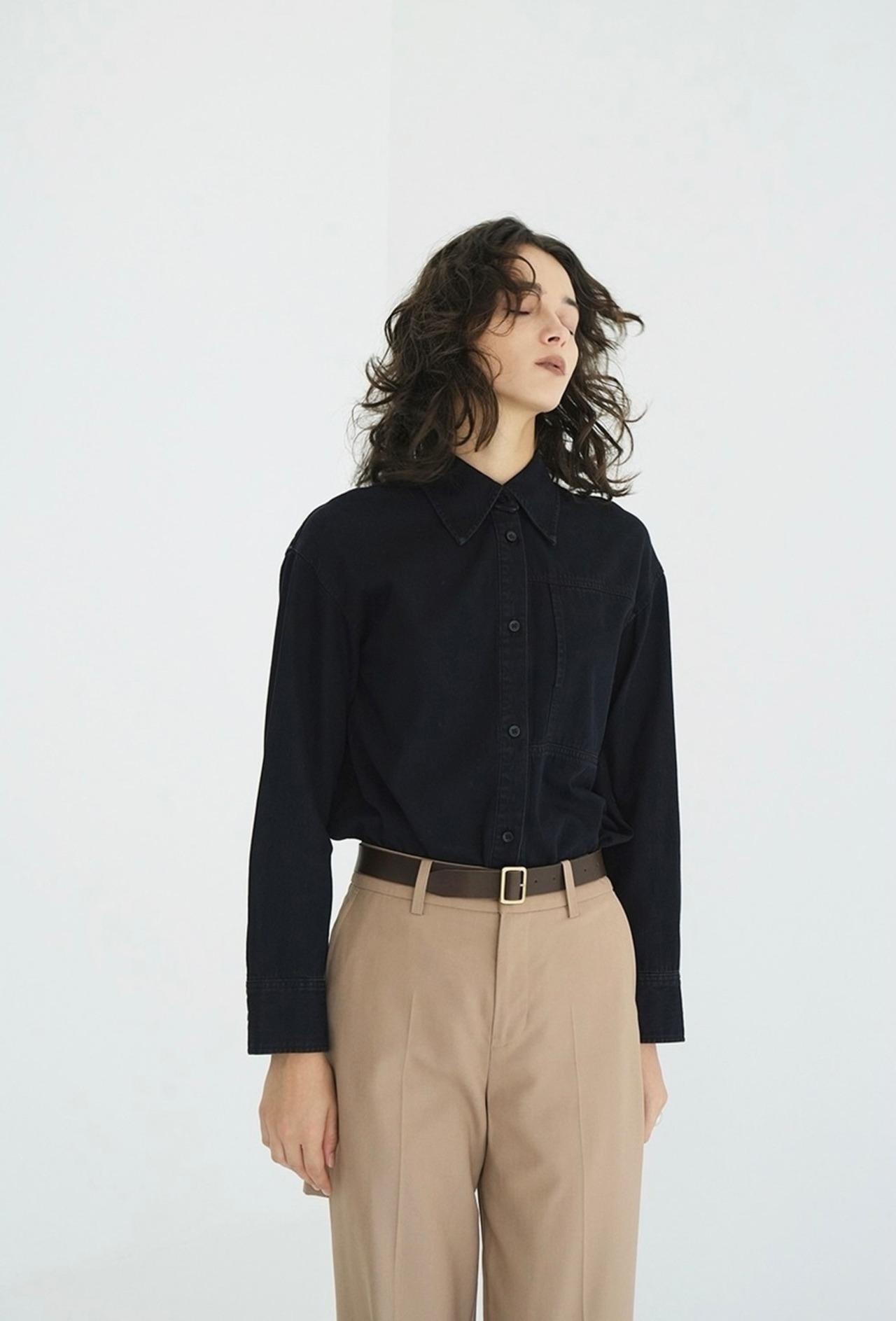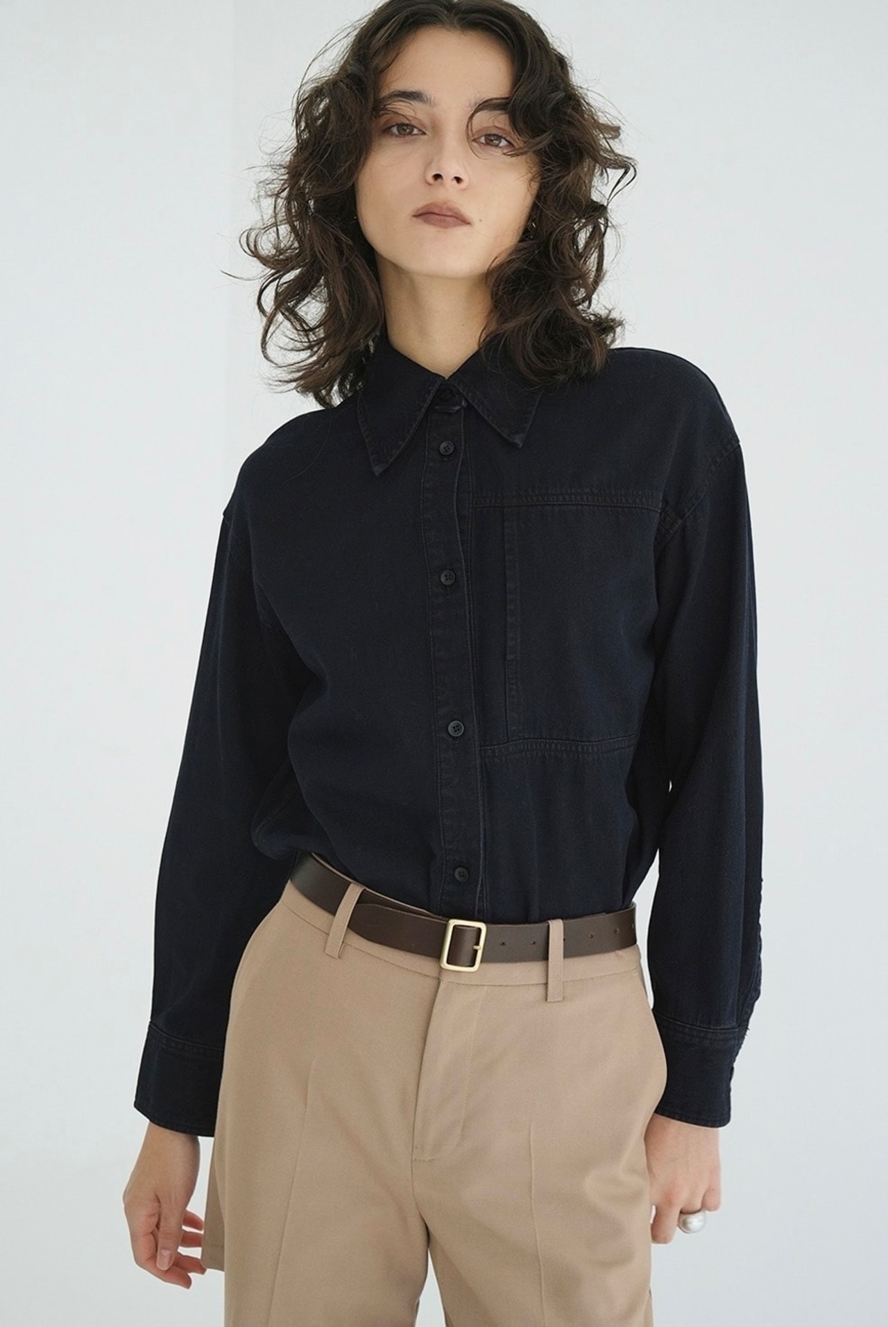 CLANE COMPACT DENIM SHIRTS -BLACK-