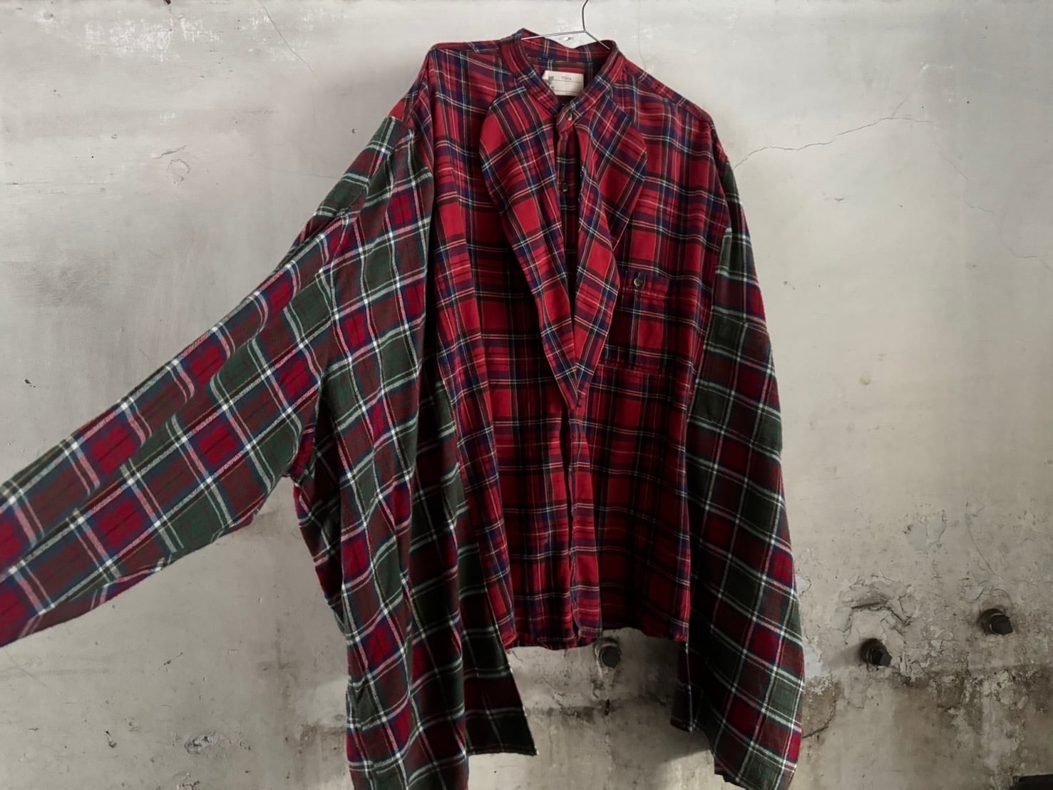 USEDインポートのシャツを2枚組み合わせてつくられたシャツ。