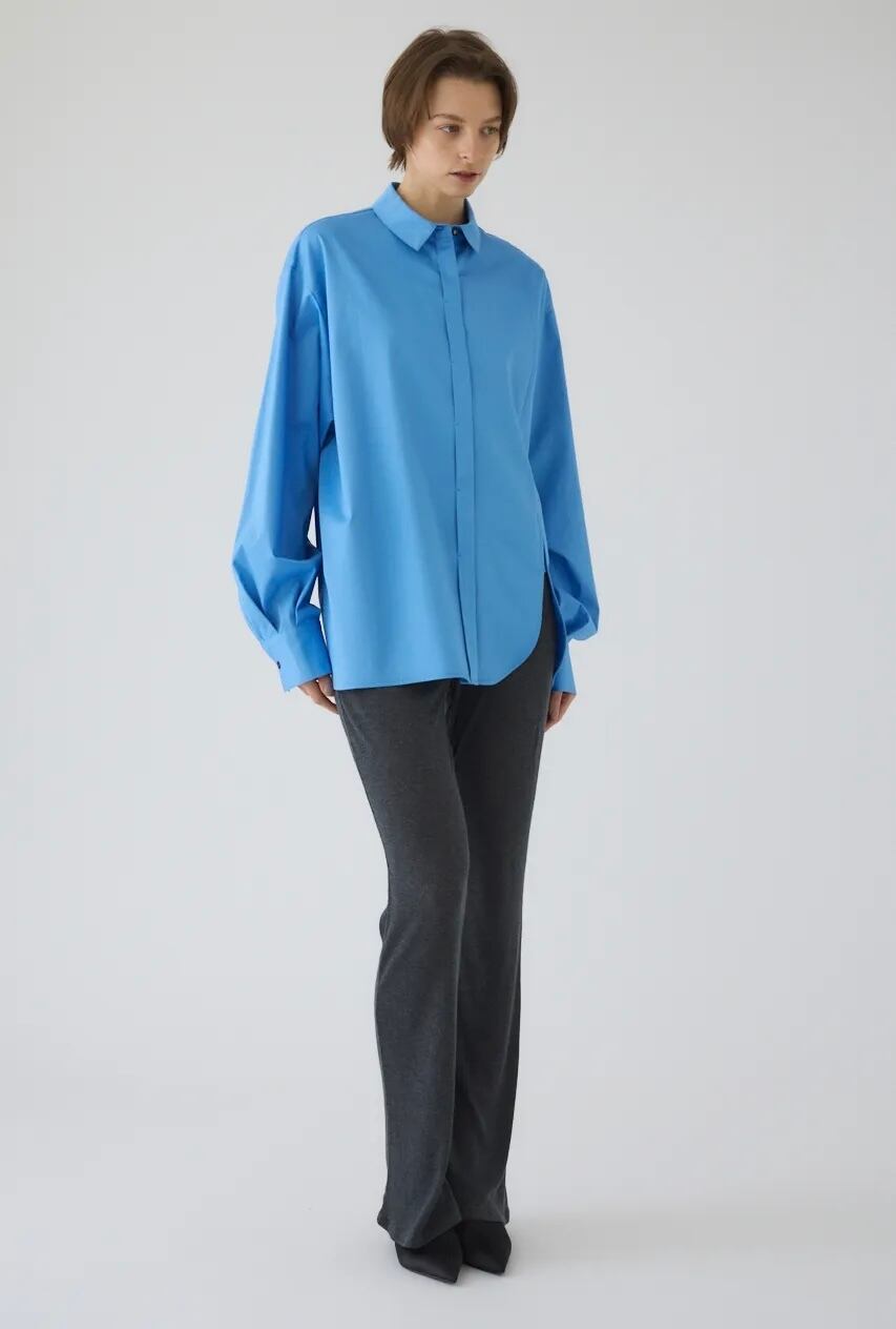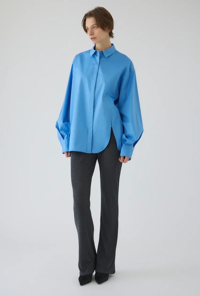 ■STYLING:フロントスリットの抜け感を活かし、ハイウエストのパンツやスカートと合わせるのがおすすめです。