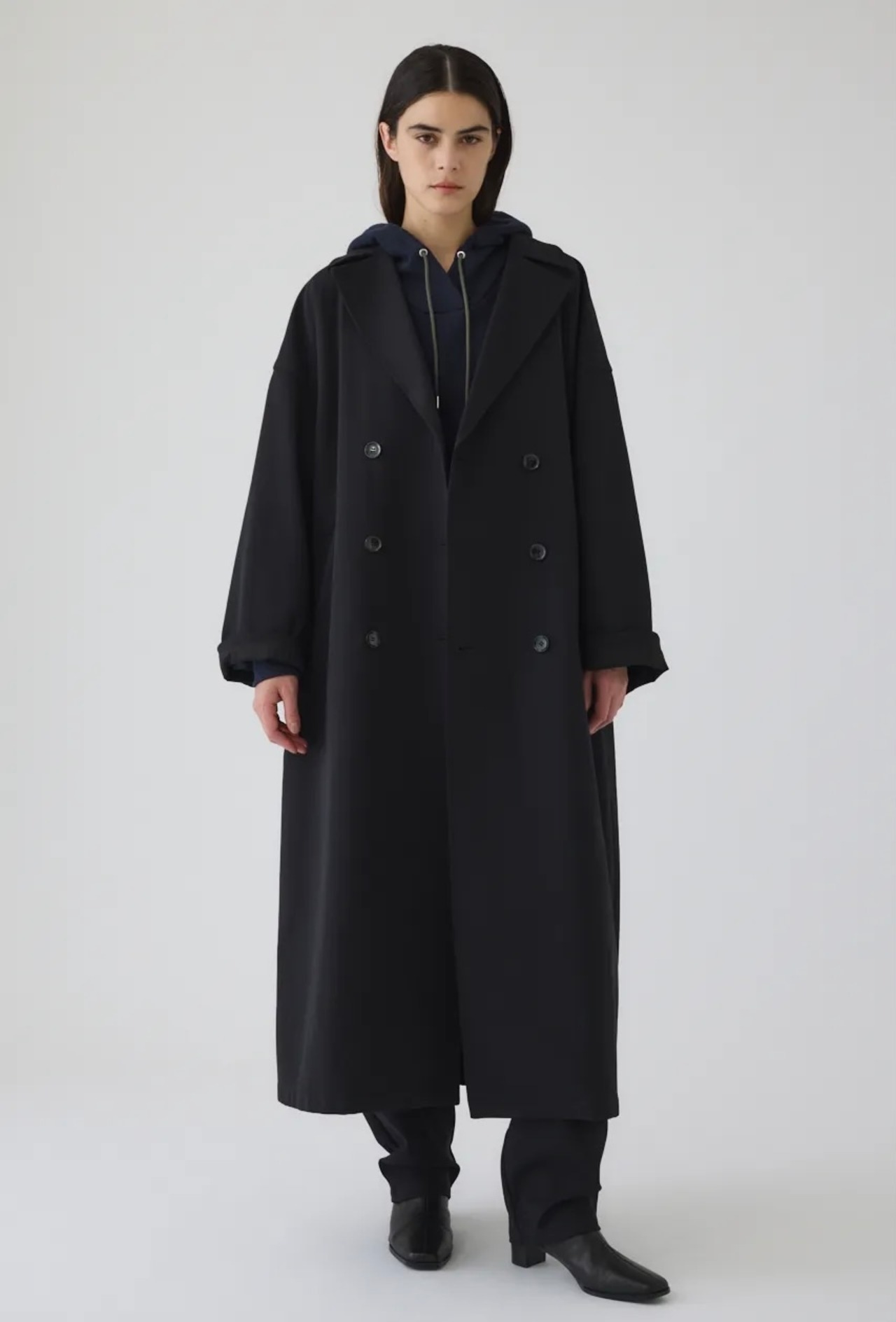 クラシックなデザインを現代的なオーバーシルエットで再解釈し、ラフに羽織るだけでこなれた雰囲気を演出する一着です。