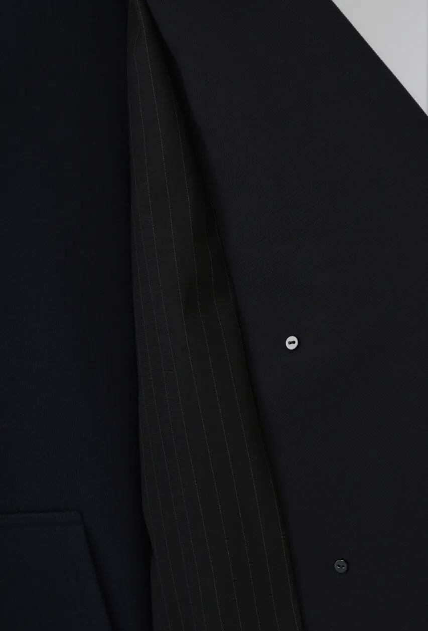 クラシックなダブルブレストのデザインをベースに袖口を折り返した際や脱いだ時にのぞく、裏地のストライプ柄がさりげないアクセントになります。