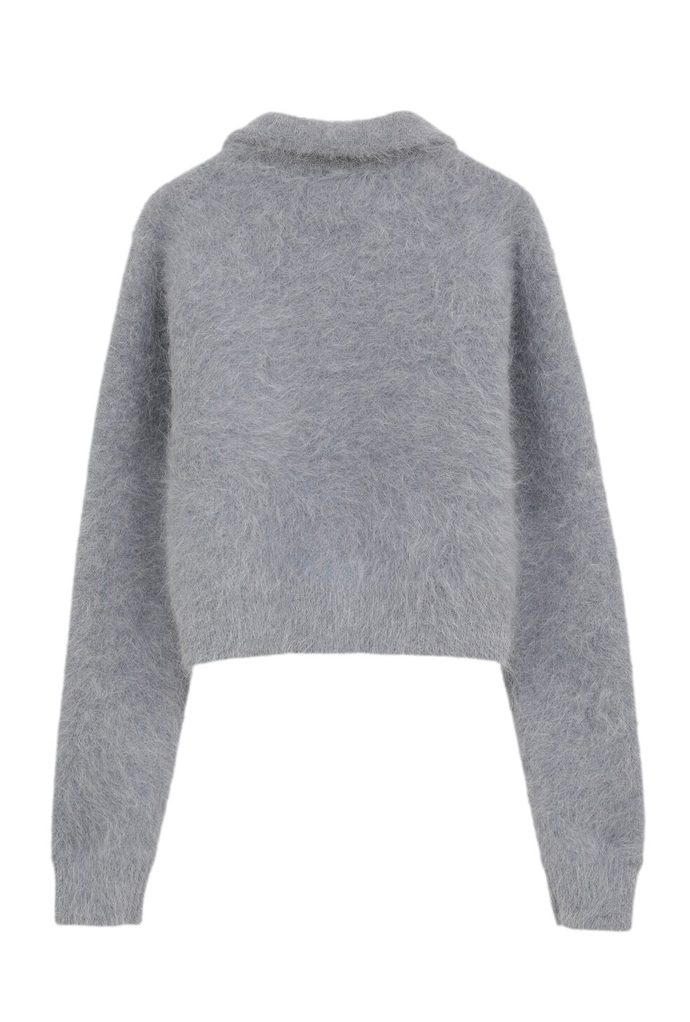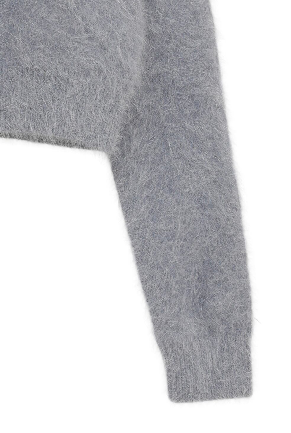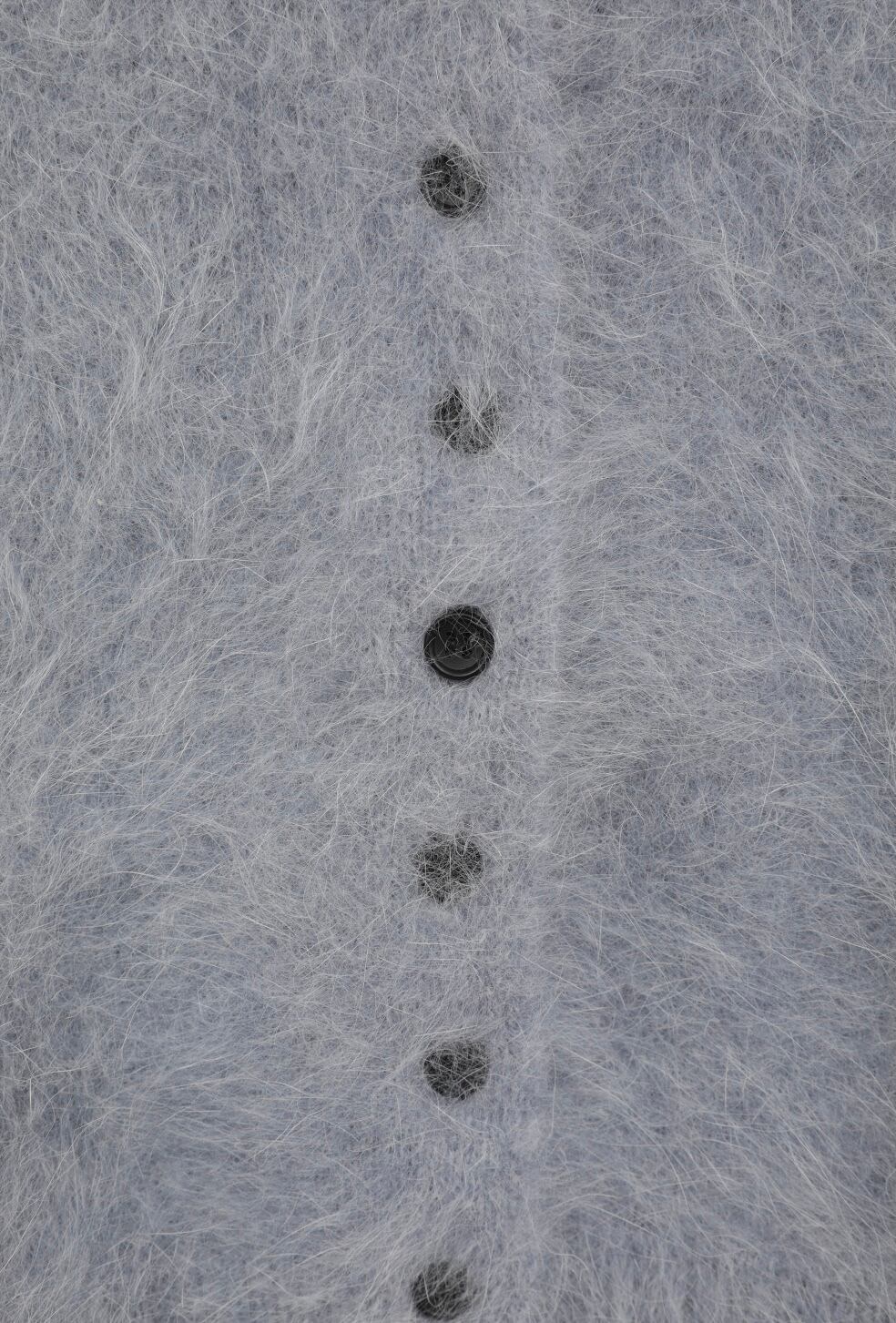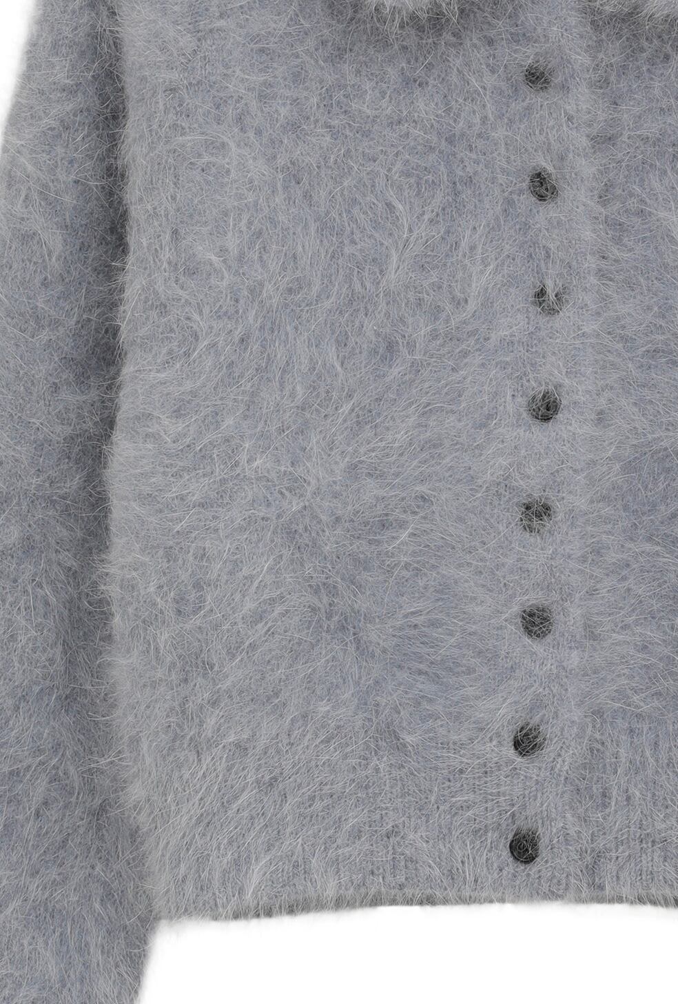 アンゴラ混の糸を使用した、コンパクトなニットカーディガン。