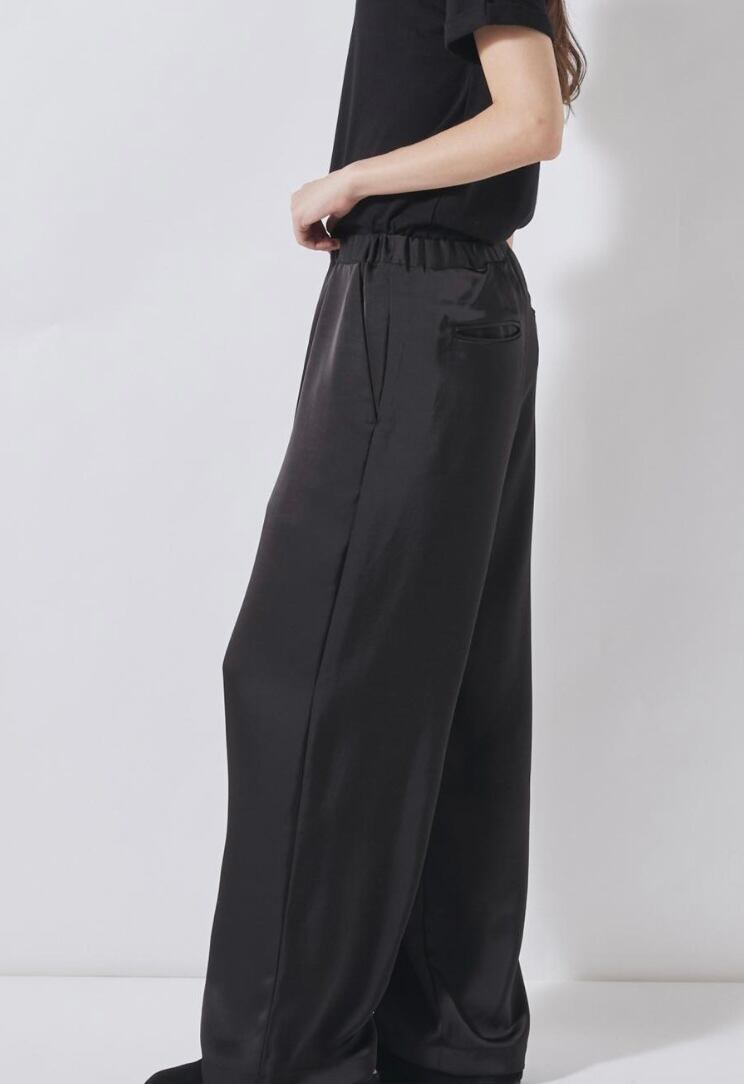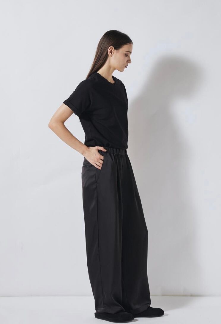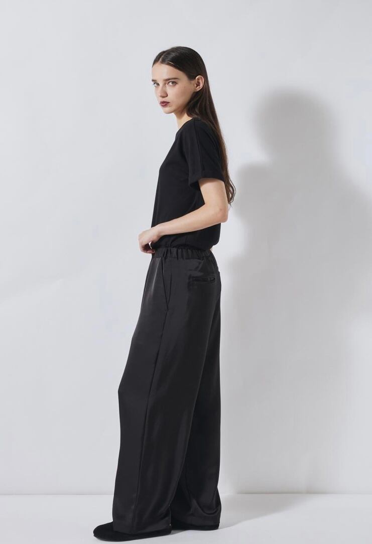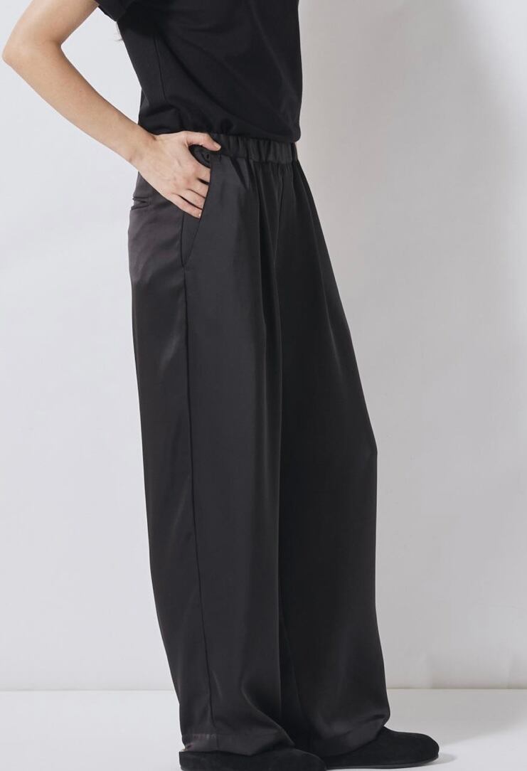 FLORENT ダブルサテンワイドパンツ -BLACK-