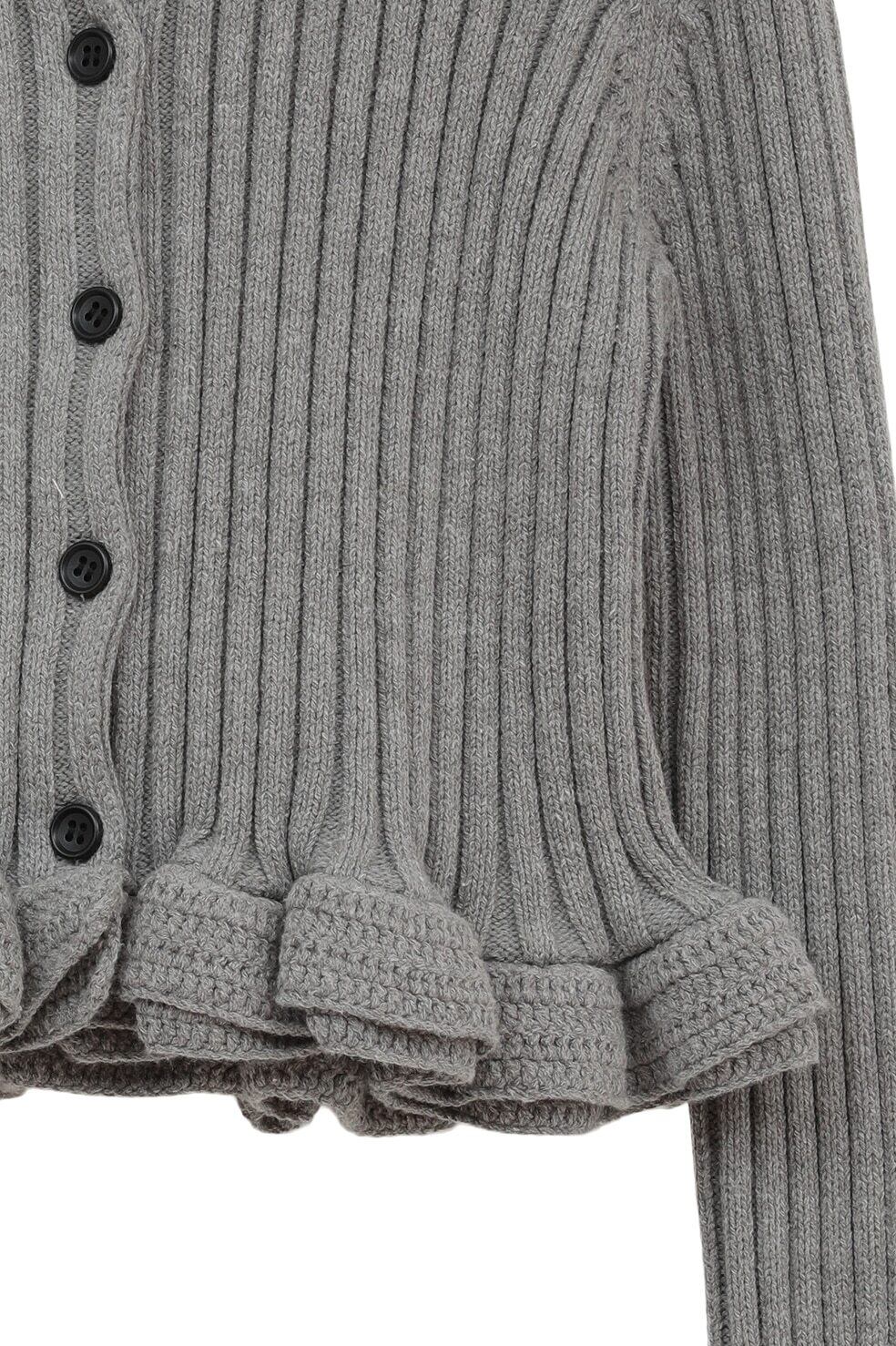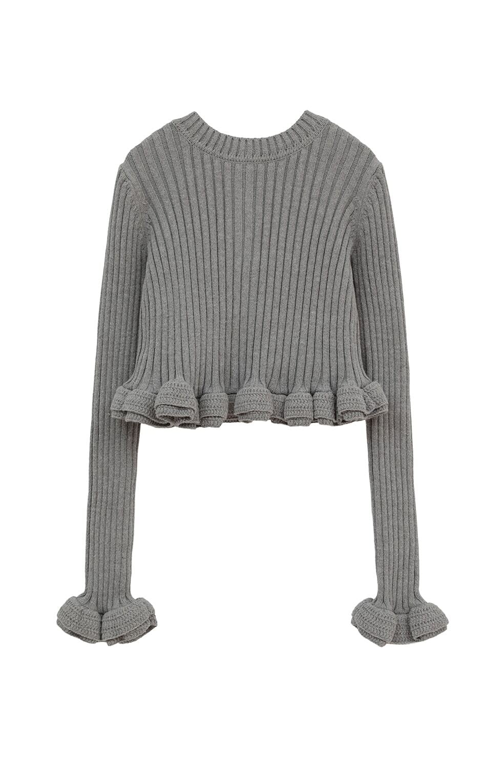 CLANE W FACE SHORT FRILLED KNIT TOPS -GRAY-