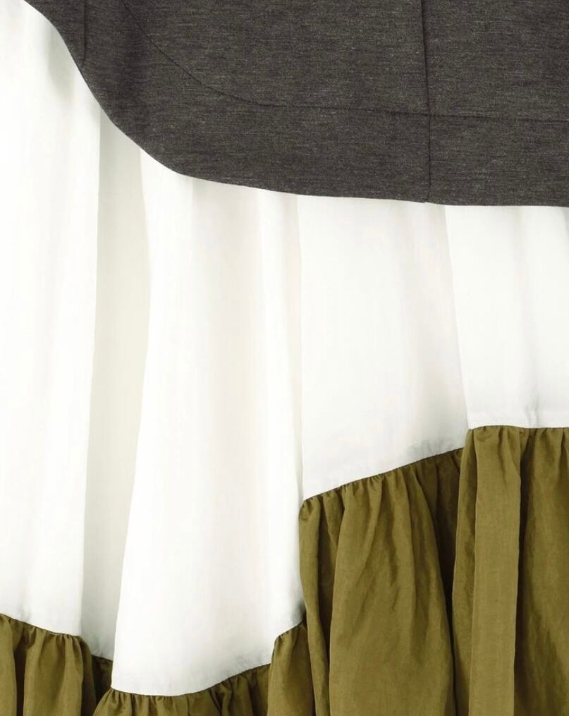 たっぷりと寄せたギャザーとインパクトのある配色が、動くたびに立体的な表情を生み出します。