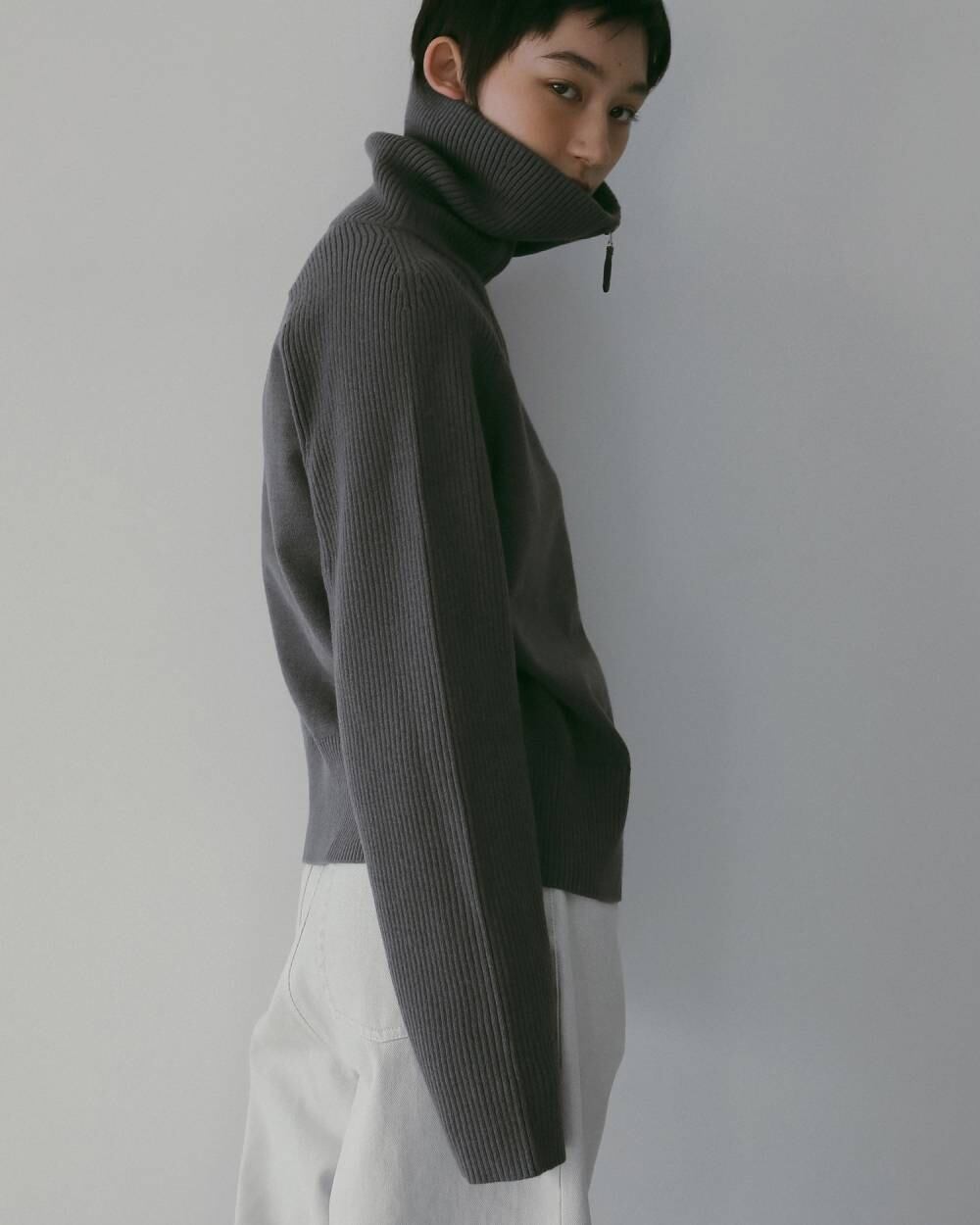 anuke Zip Rib Knit -GRAY-