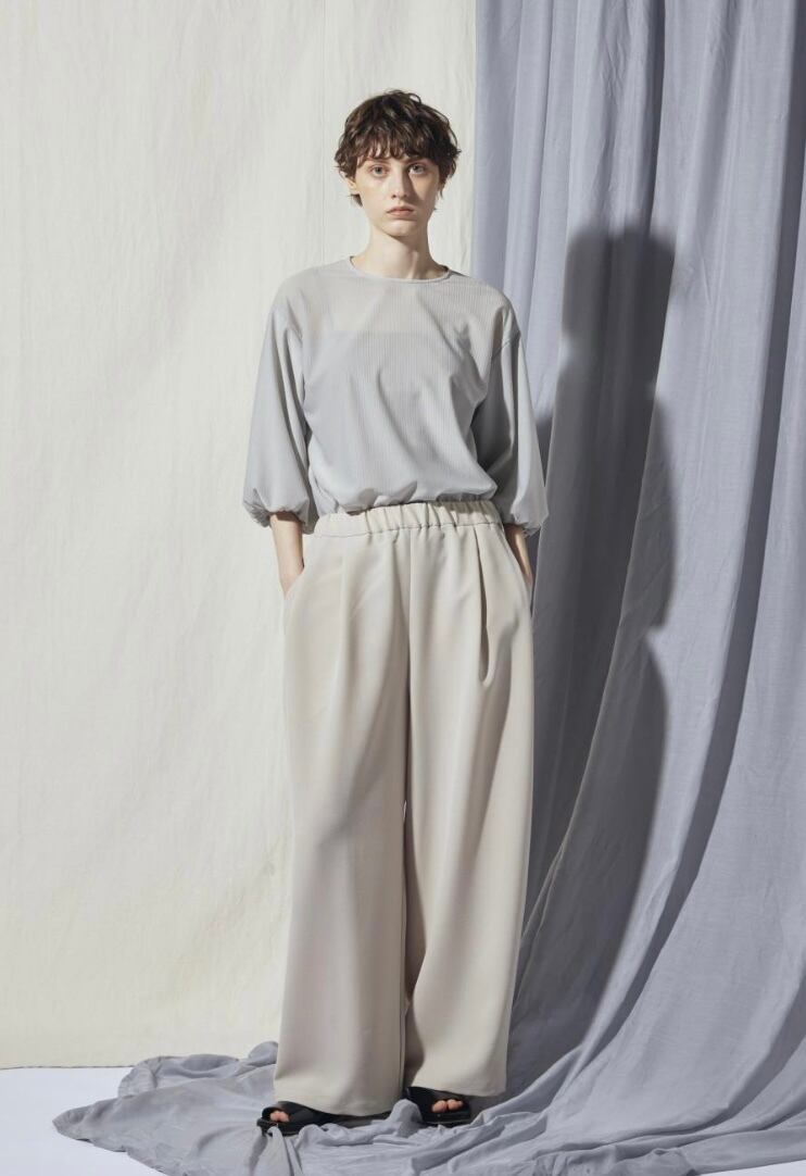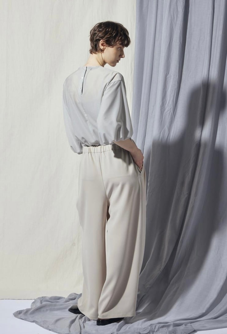 数時間の移動でもシワになりにくく、スーツのようなマット素材でありながら着心地はジャージのように伸縮性がありこの夏にぴったりなワイドパンツ。ウエストはゴム仕様で2タックデザインのゆったりとしたワイドシルエットで旬のムードを高めてくれる一着です。同素材のブラウスとセットアップスタイルもおすすめ。ビジネスからデイリーシーンまで幅広く活躍してくれる万能なベーシックアイテムです。