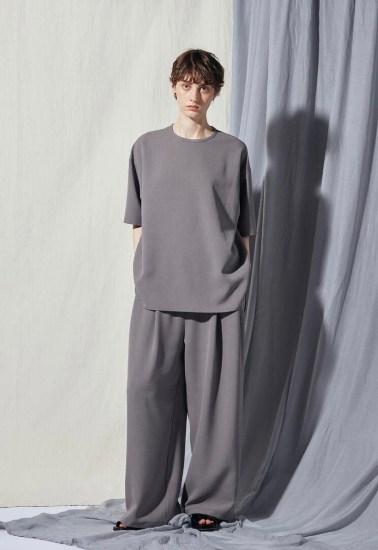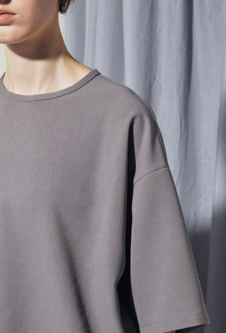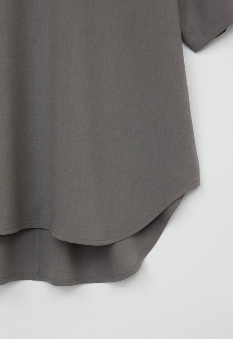シワになりにくく適度な清涼感、ドライタッチでこれからの季節に嬉しいブラウス。リラクシーな着心地とさらりとした素材感で肌離れも良く、キックバックも良いので美しいシルエットを保つことができます。フロントスタイルはすっきりとしたシンプルな見え方をしつつ、バックスタイルはくるみボタン仕様で可愛さをプラス。デイリーやオフィスカジュアルにも最適で、同素材のパンツとセットアップで着用することも可能。