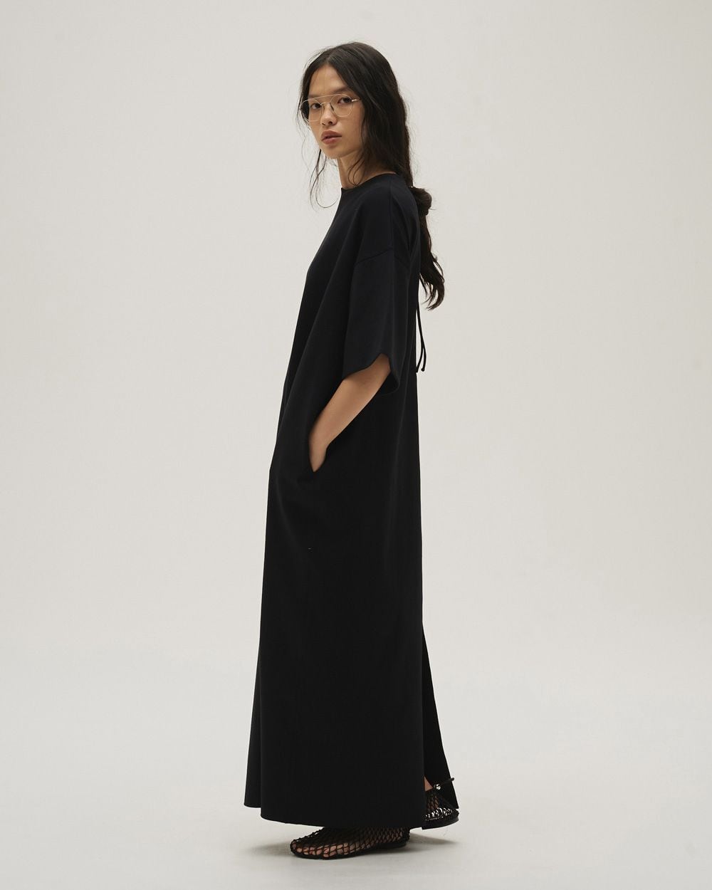 ほどよく肉厚で上質なカットソー生地を使用したドレス。身体のラインを拾わないゆったりとしたシルエットで、ラフに纏えるのに洗練された印象に仕上がる一枚。衿リブを省き、袖裏には薄い生地を重ねることで縫い代のステッチを見せないなど、ミニマルで上品なディテールも魅力。合わせる小物で幅広いスタイリングに馴染みます。