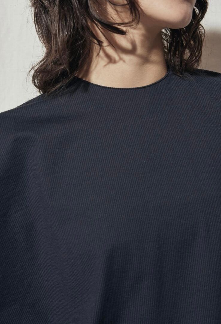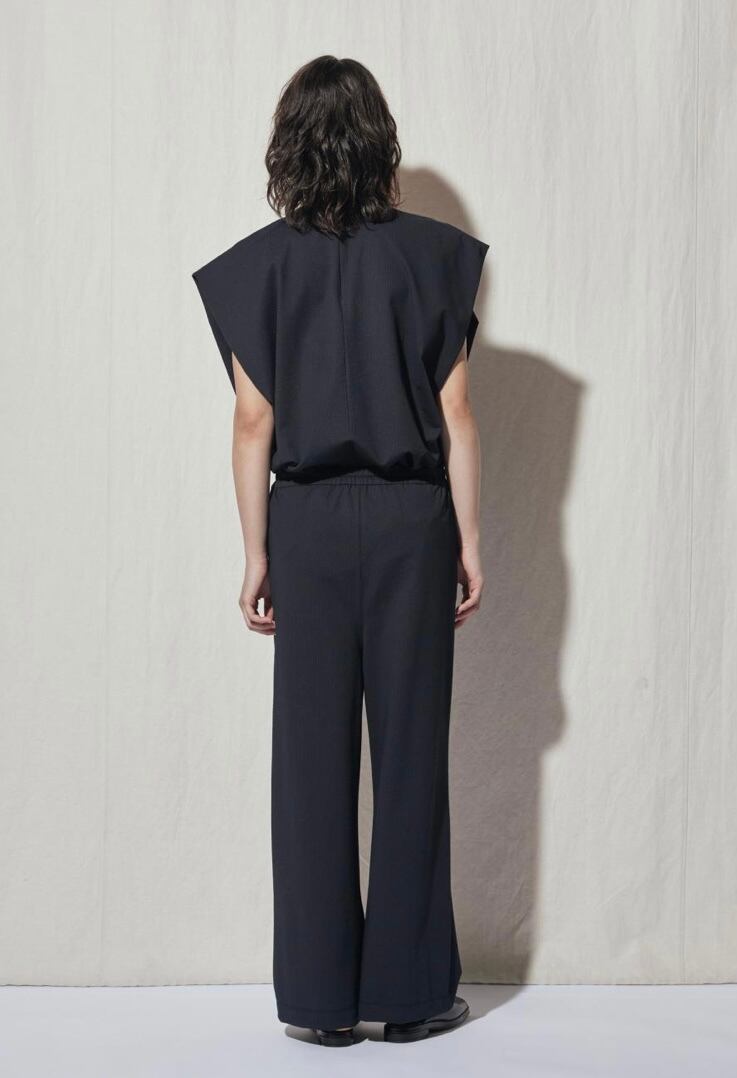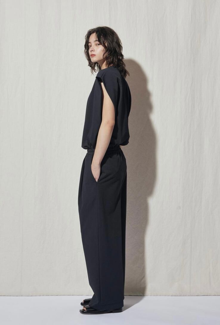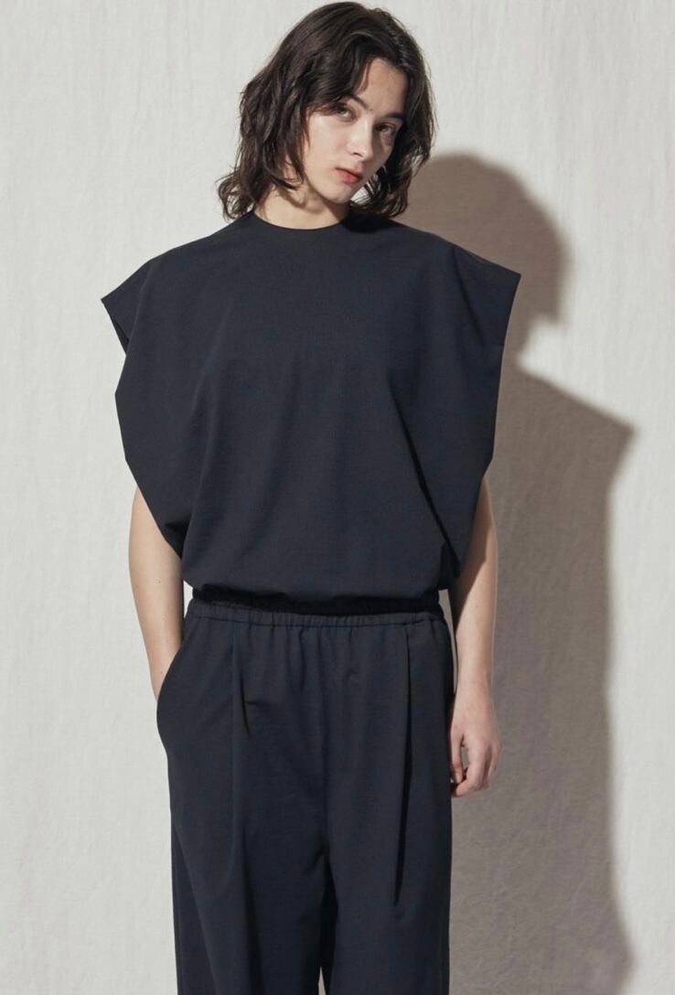 細かな凹凸が生み出す立体感のある表情が特徴のコットンサッカージャージー素材のトップスです。上身頃は立体的でややボックス型になっていて後ろはジップ仕様に。詰まり目な襟元も安心で、接触冷感性と吸水速乾性が備わっているので、汗ばむ季節も快適に。シーズンレスで取り入れやすく、カットソーをレイヤードしてベストのようにもお使いいただけます。同素材のパンツとセットアップで着用することも可能。
